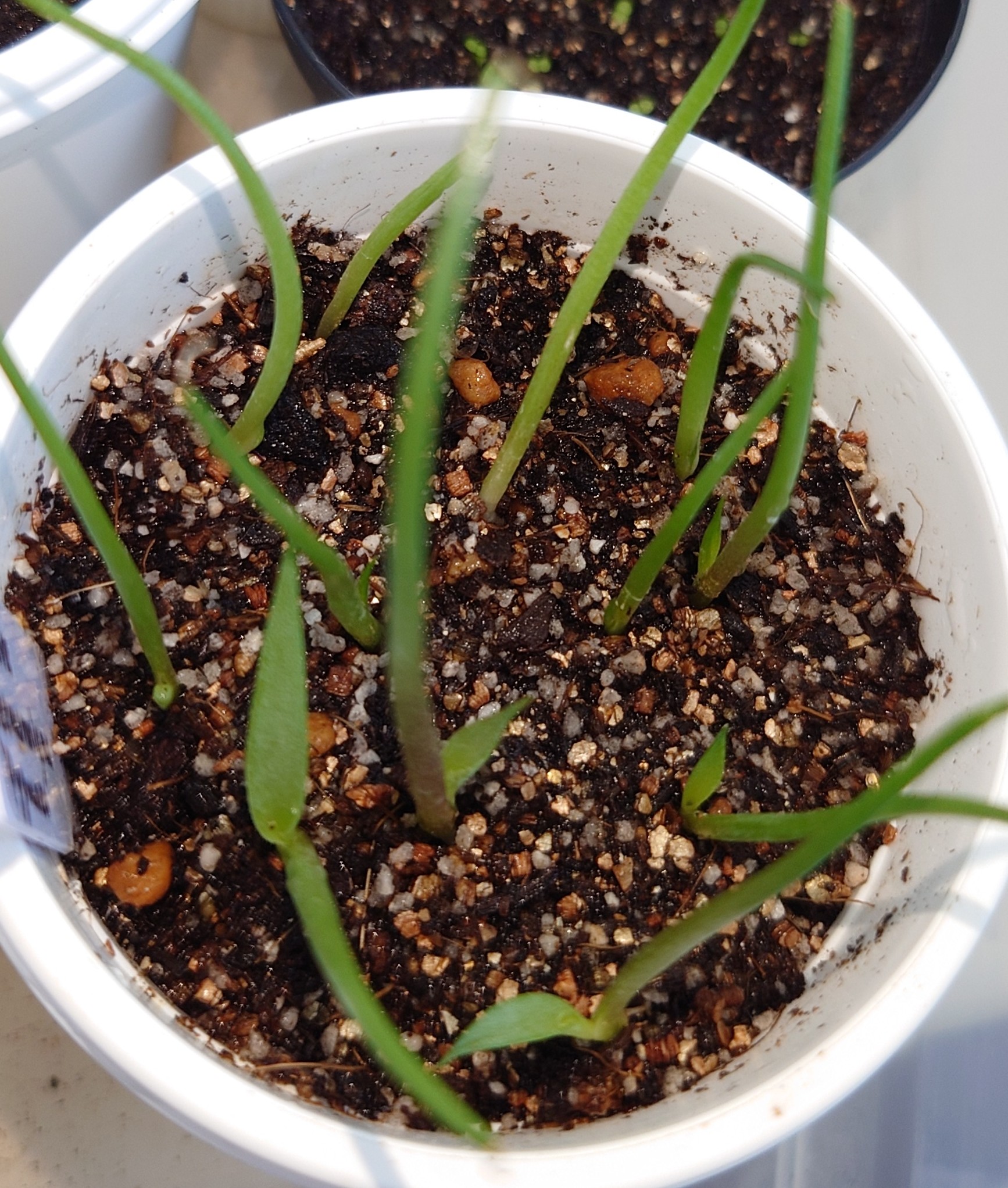 芽が出たら蓋を外して水位を鉢底が浸かる程度に下げた