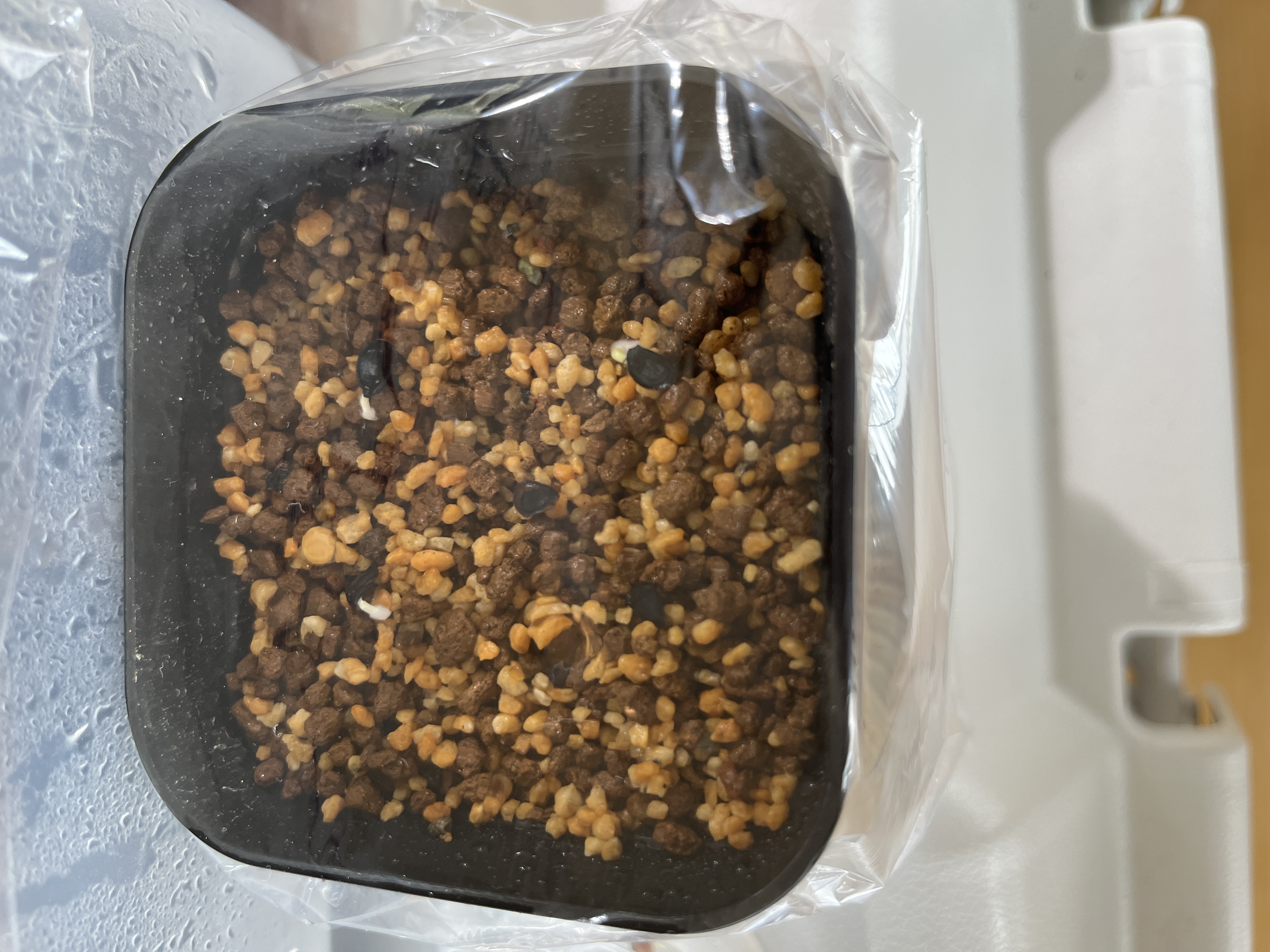 [ 播種日 / 撮影日 ] 2025/5播種 2025/6/25撮影 [ 播種数 / 発芽数 ]5粒/ 3割 少し割れたもの1つ、白くて中身がなさそうなもの1つを含む実質10割発芽と言っても問題ない位です、今は3匹仲良く成長してします