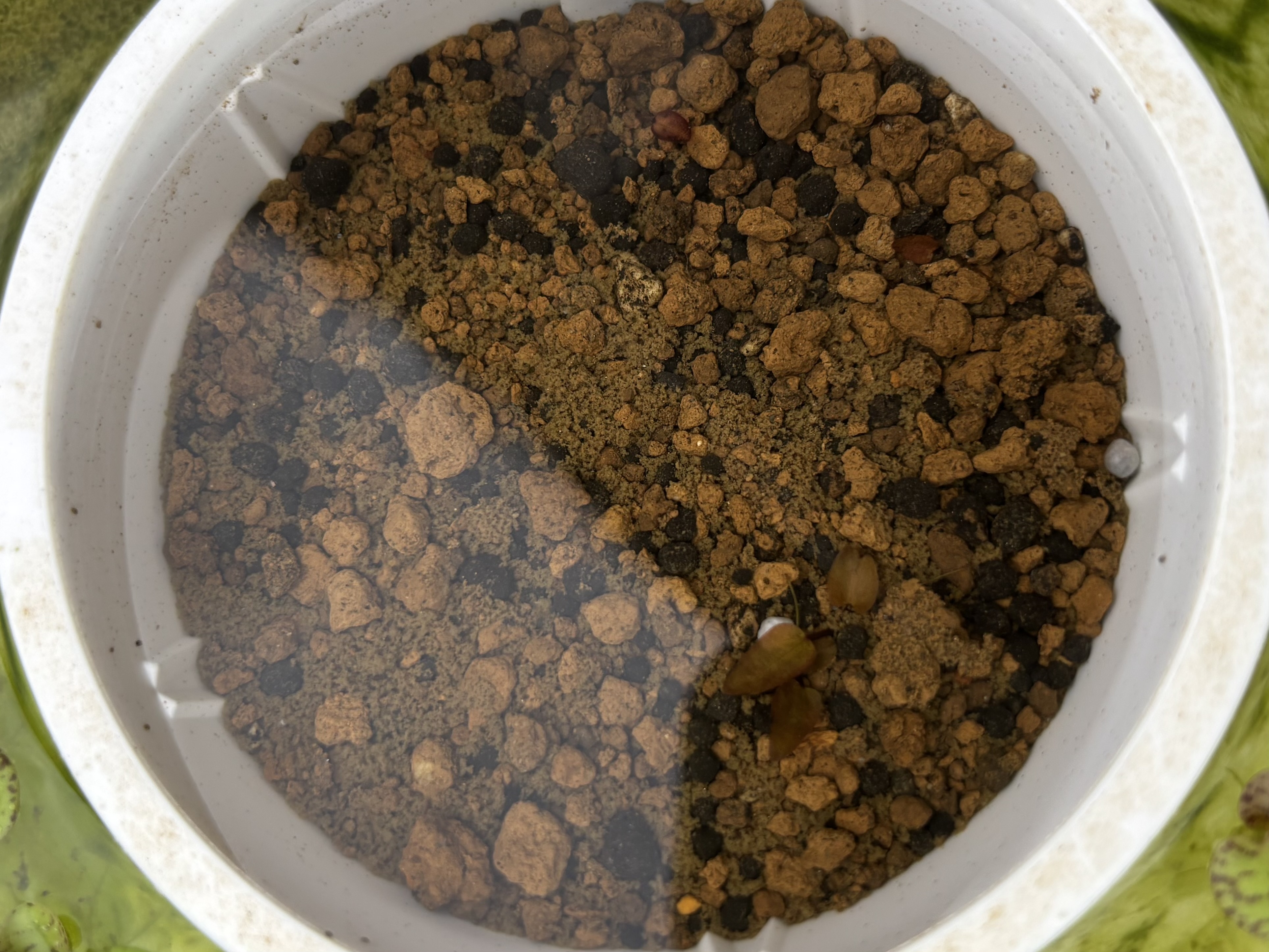 睡蓮のようなので鉢に水生植物の土を入れ播種して覆土。