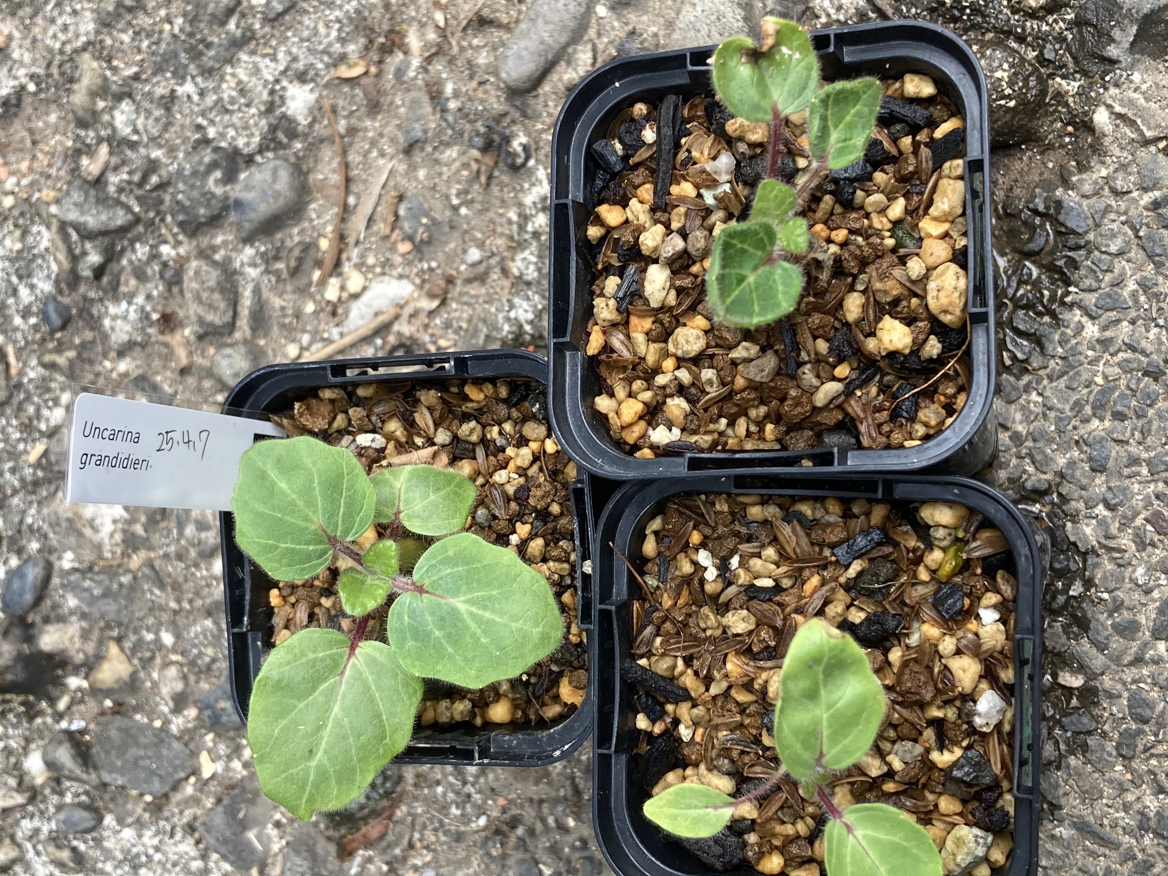 2025/4/7播種 2025/7/1撮影[ 播種数 / 発芽数 ]24粒/ 3粒(+2粒)[ その他(用土や管理方法など)]播種前にベンレート+メネデール溶液に1日程度浸漬赤玉用土細粒+バーミキュライトを敷き播種、20度〜25度で管理