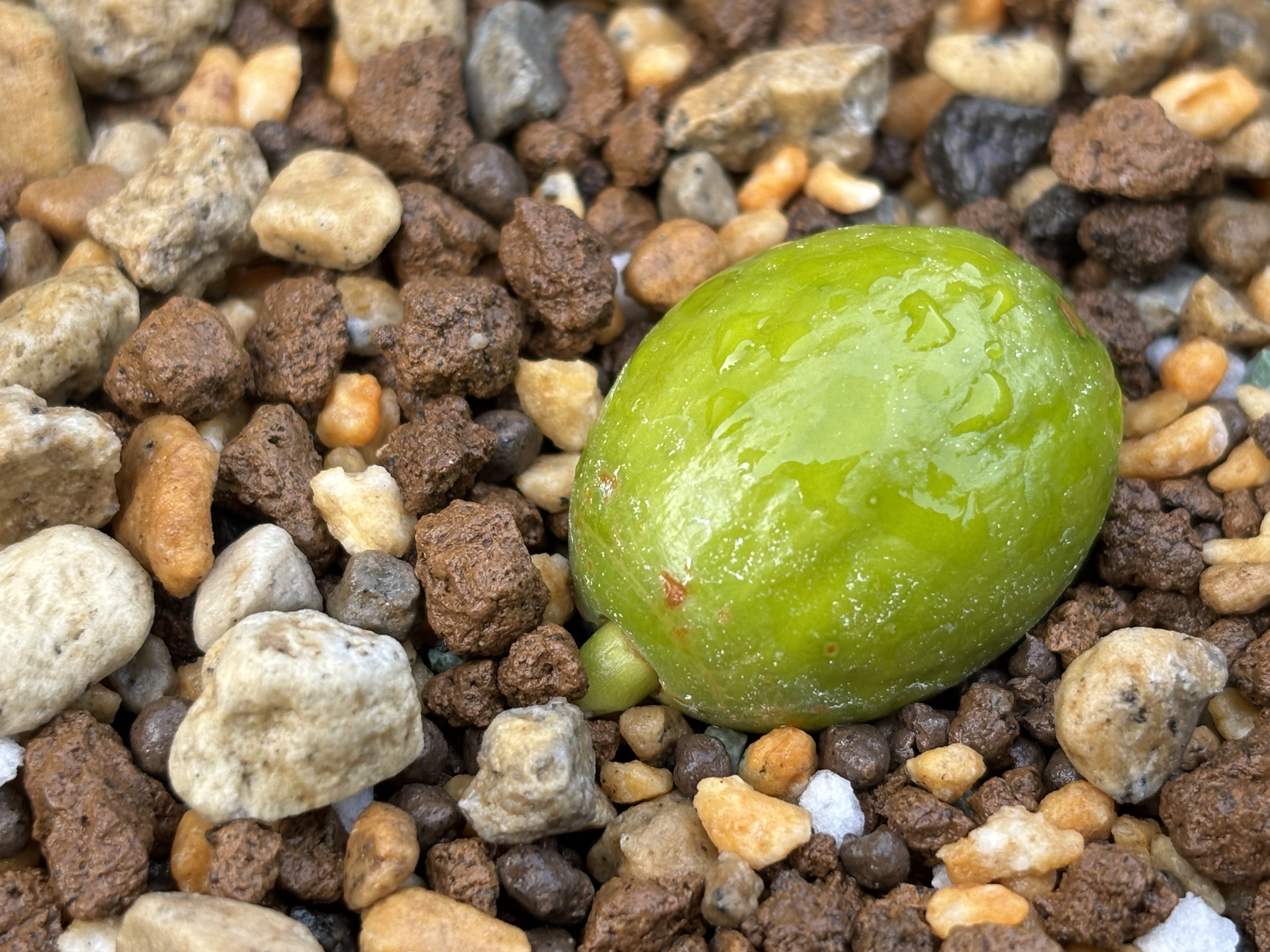 殻を割り、赤玉、鹿沼土、軽石に播種。