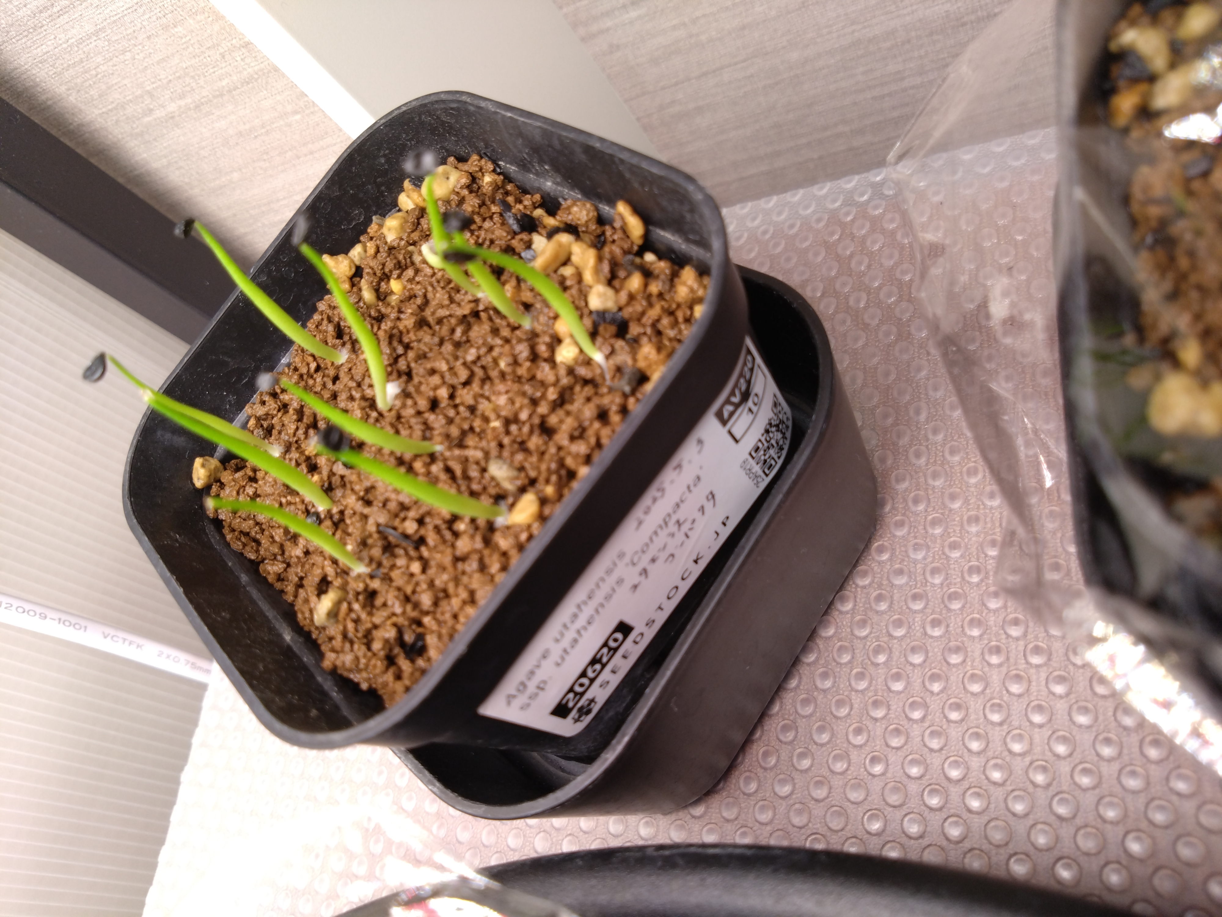 [ 播種日 ] 2025/4/25播種 [ 播種数 / 発芽数 ] 例: 10粒/ 10粒 播種前にベンレート溶液に1日程度浸漬 ひゅうが土メインの用土に1センチほど赤玉細粒を敷き播種、20度〜25度で管理 その後も、室内LEDパネルライトにて1日、5時間程度の照射ですが、順調に成長中。