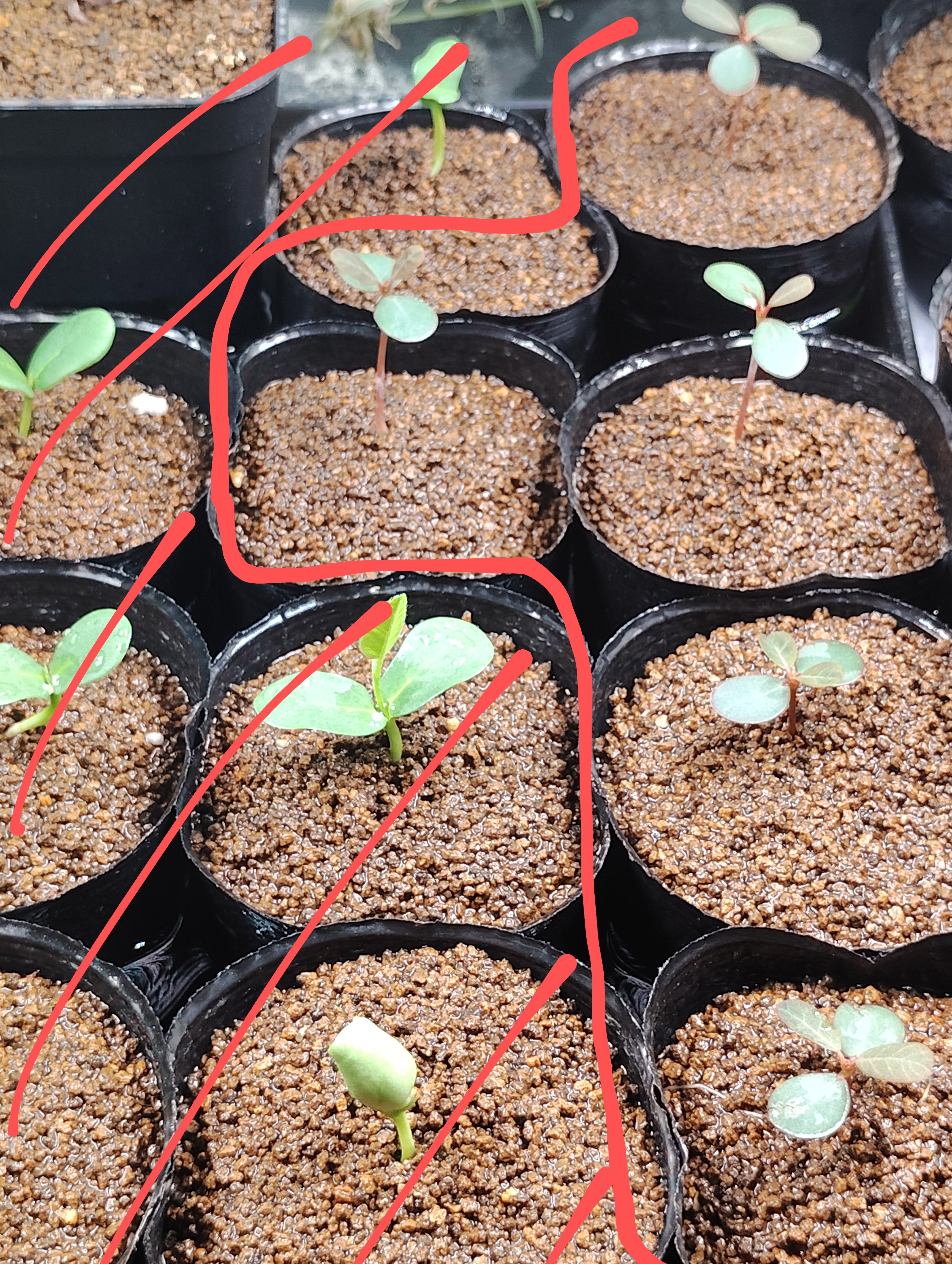 [ 播種日 / 撮影日 ]2025/6/12播種 2025/7/3撮影[ 播種数 / 発芽数 ]6粒 / 5粒[ その他(用土や管理方法など)]・播種前にベンレート+メネデール溶液に12時間程度浸漬