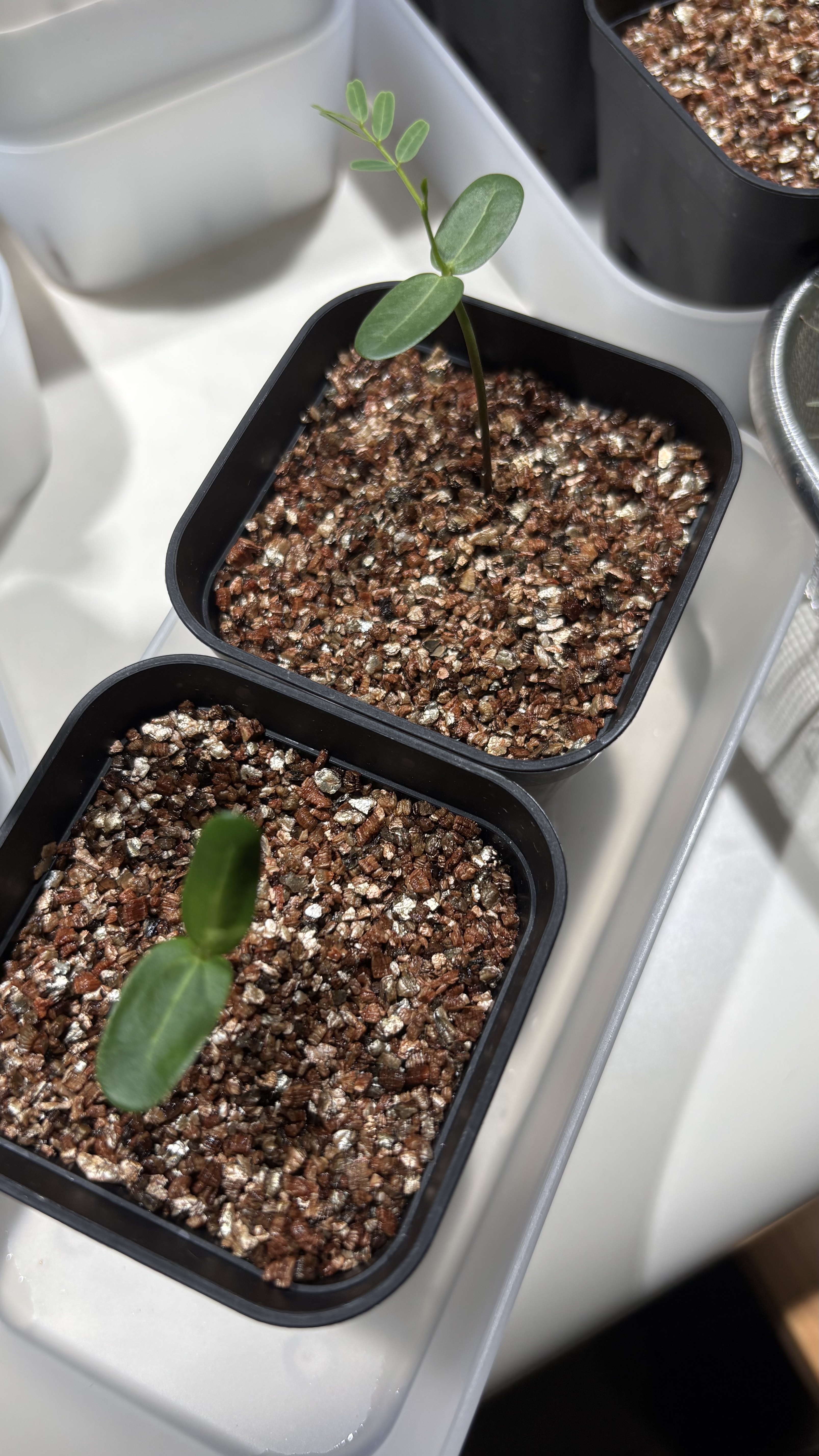 1時間ほど水道水に浸して吸水させた後、種の先端の殻をハサミで切断した。湿らせたティッシュの上に広げて、湿度を保ちながら室内(室温25~30度)で管理した。