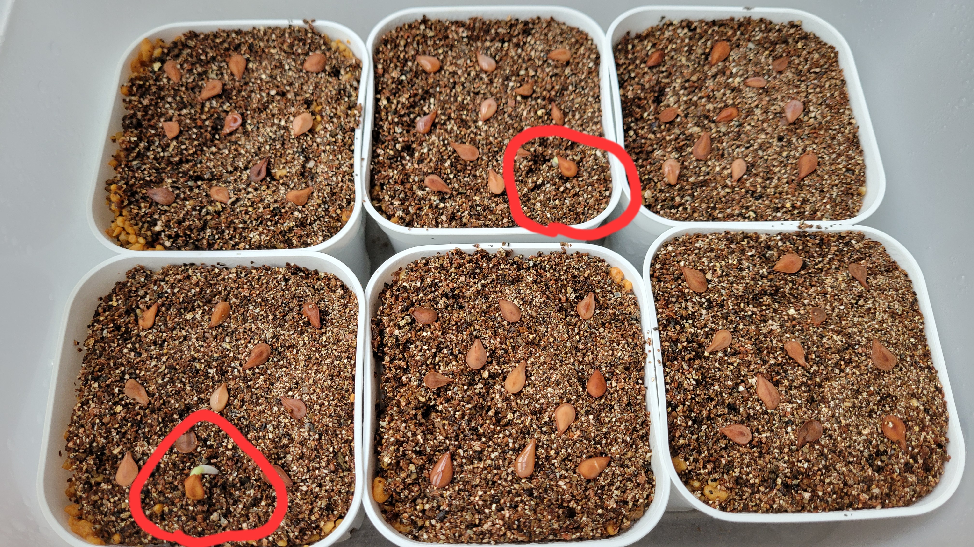 室温は日や時間によるが、20℃~35℃の室内で高湿度保つようタッパーに入れ腰水で管理