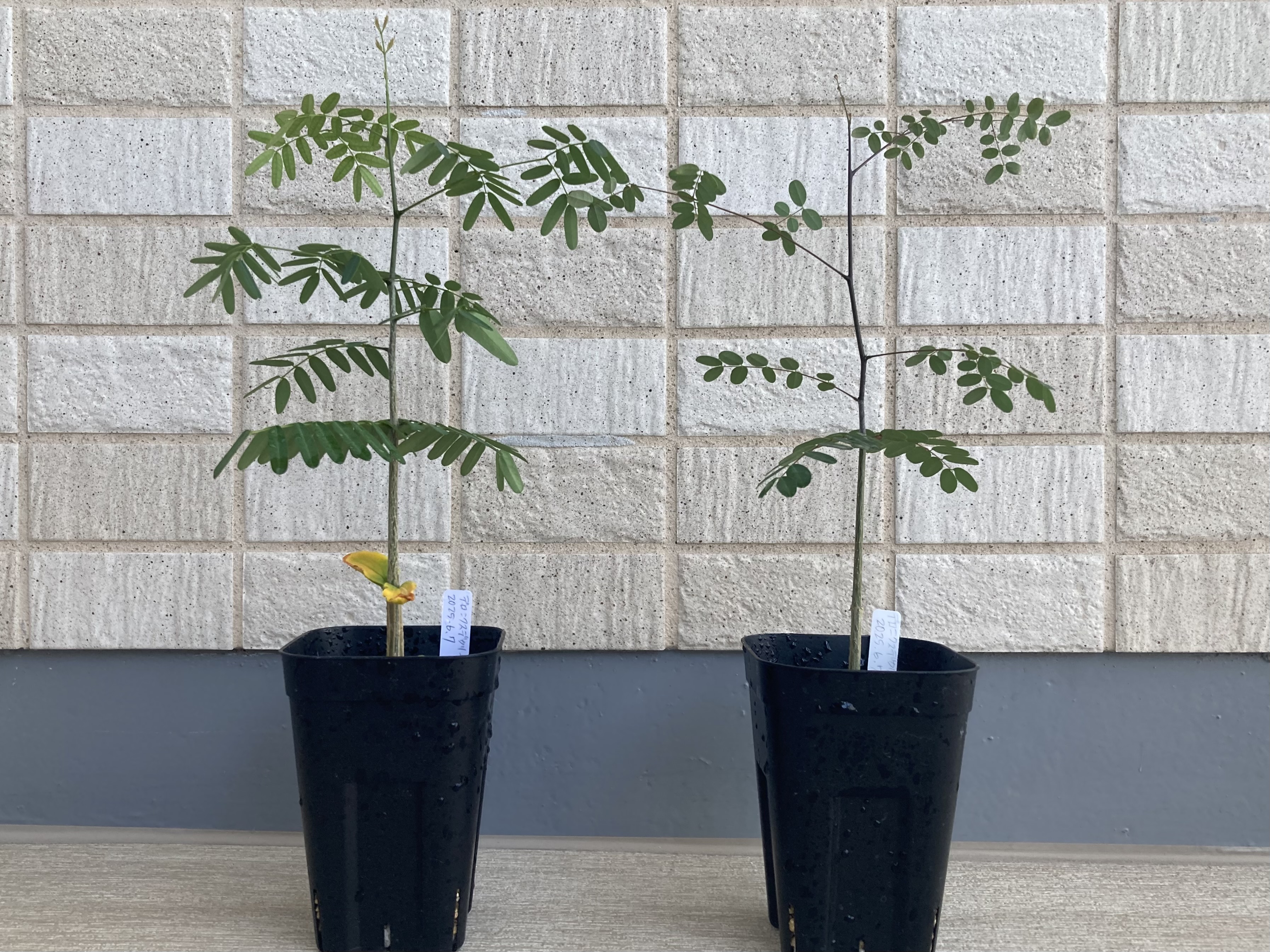 購入時1粒際立って大粒の種子があってそれが左、これは確実にデカリーの葉