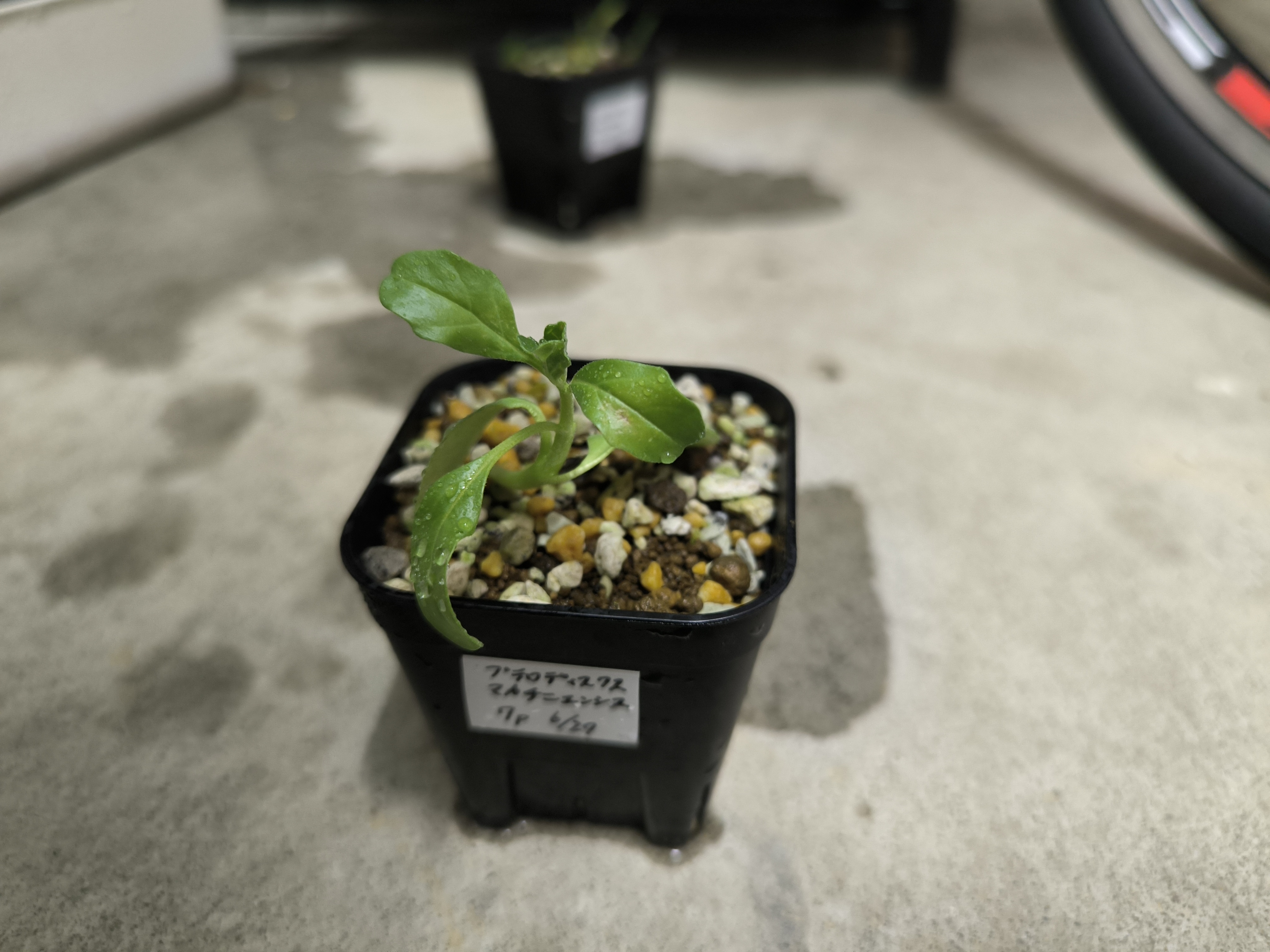 最高気温25〜35度(最低気温20〜27度)の午前中だけ日が当たる40%遮光している屋外の棚で腰水管理しつつ、毎日霧吹き。