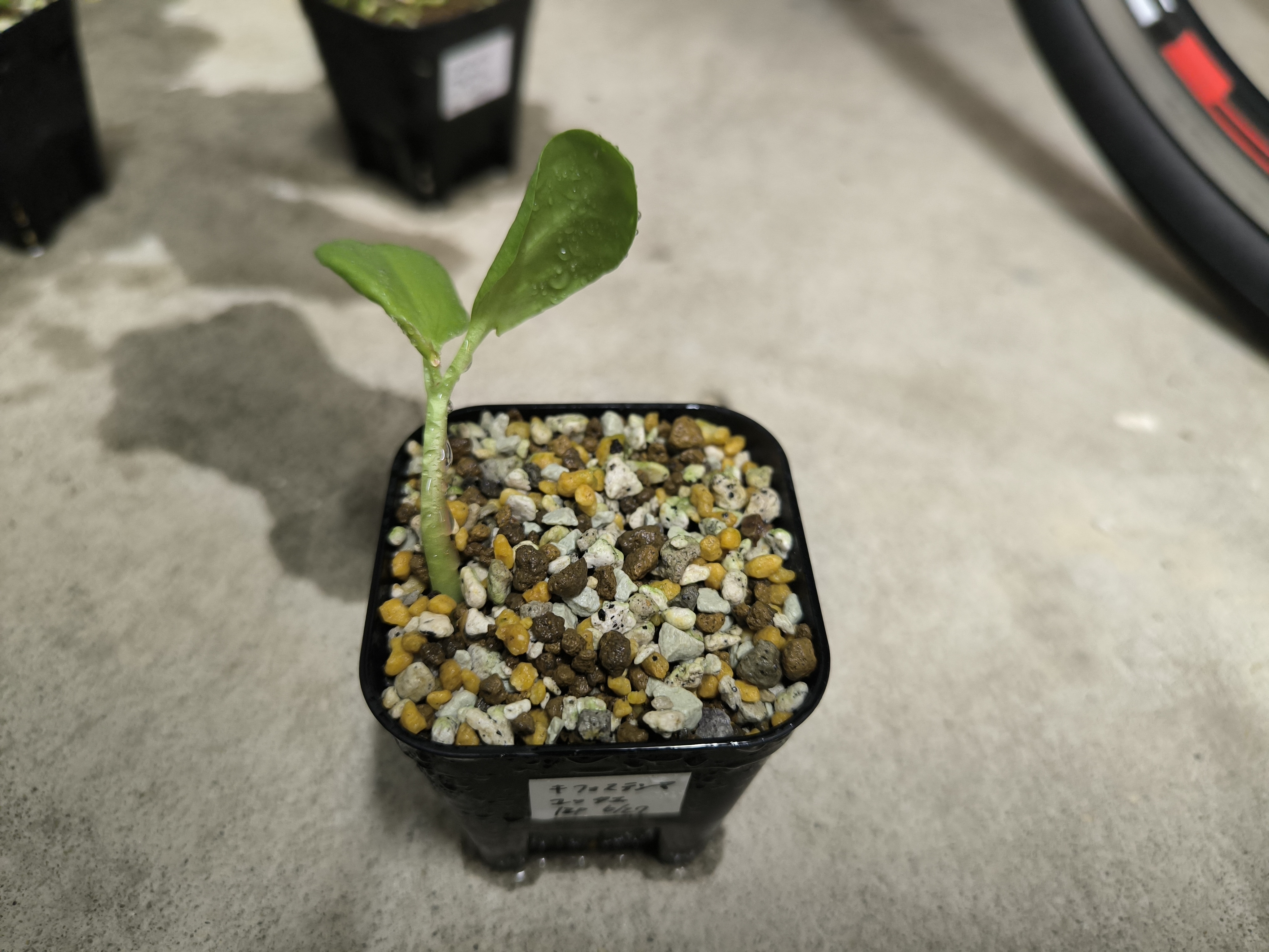 最高気温25〜35度(最低気温20〜27度)の午前中だけ日が当たる40%遮光している屋外の棚で腰水管理しつつ、毎日霧吹き。