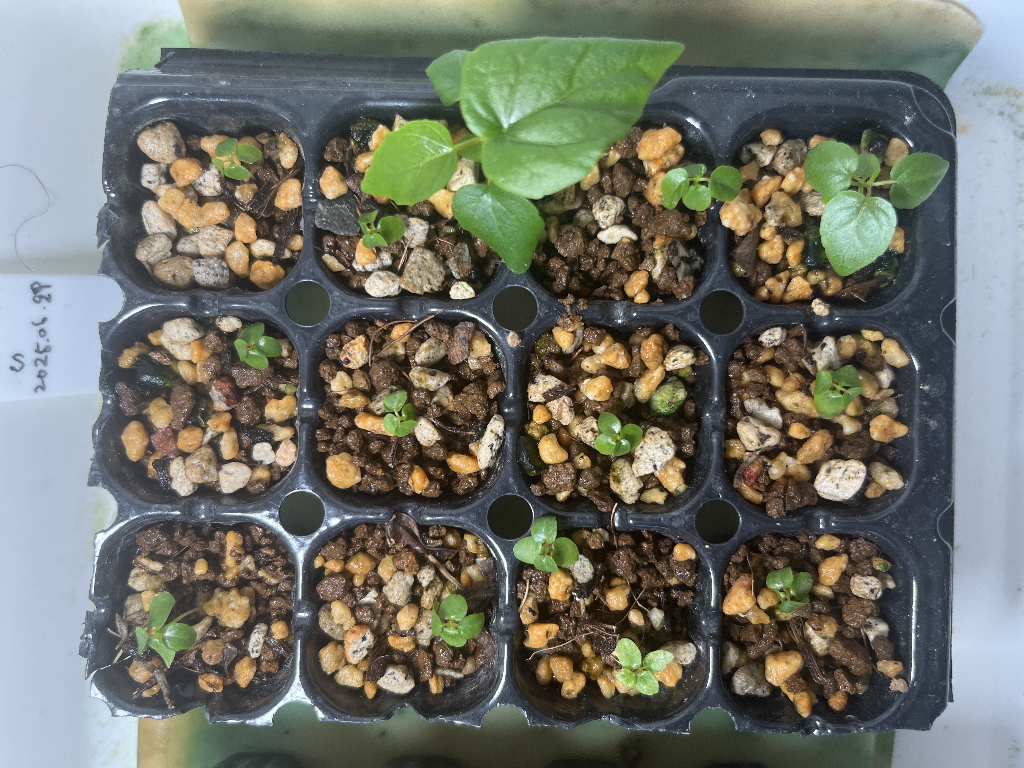 [ 播種日 / 撮影日 ]2025/6/29播種 2025/7/29撮影[ 播種数 / 発芽数 ]10粒+α/ 15粒[ その他(用土や管理方法など)]無機質用土に播種、28度〜30度で管理