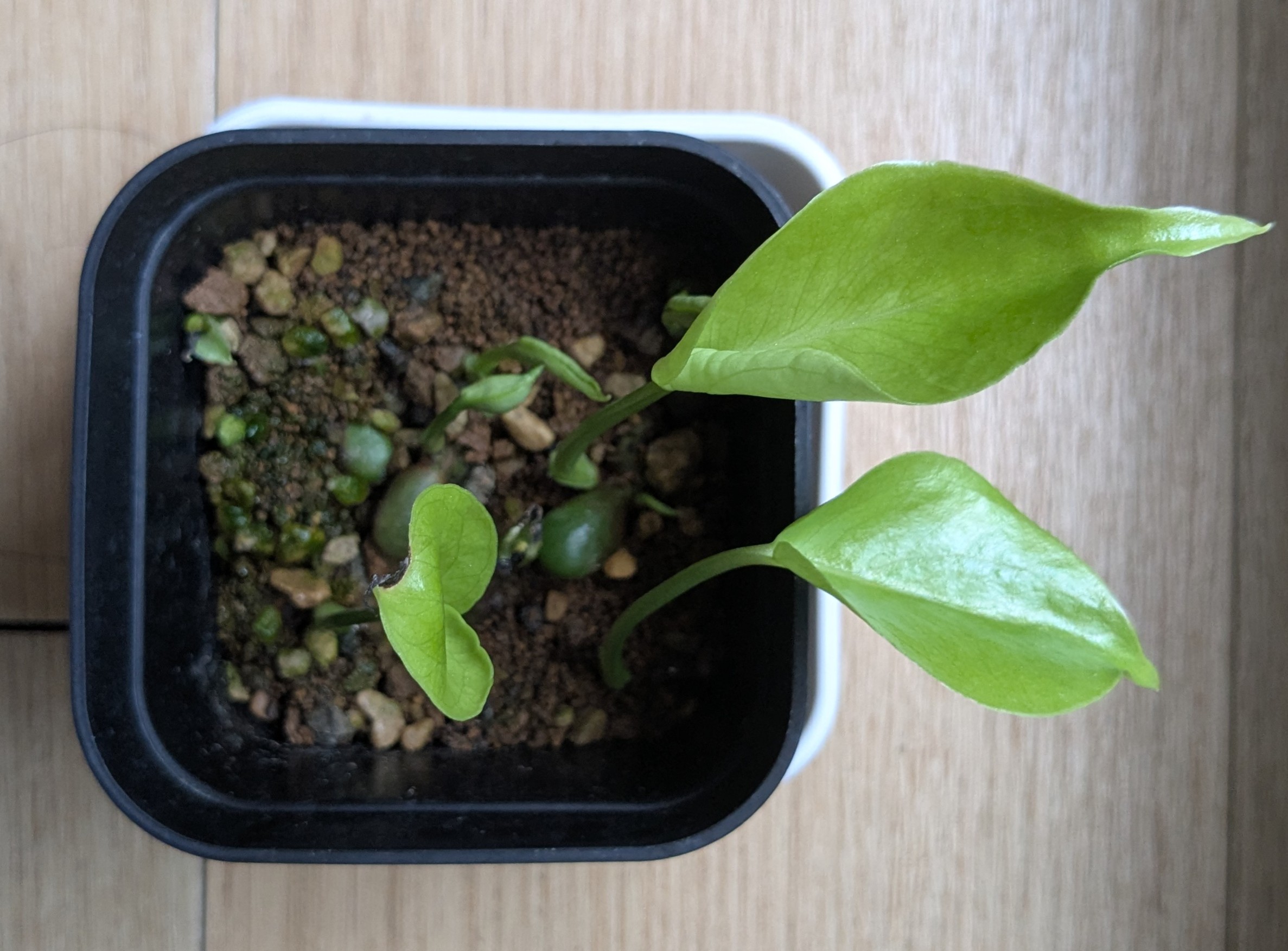水に一日つけたあとに軽く覆土をして播種。屋外管理35度前後。少しカビが出ましたが2週間ほどで発芽しました。