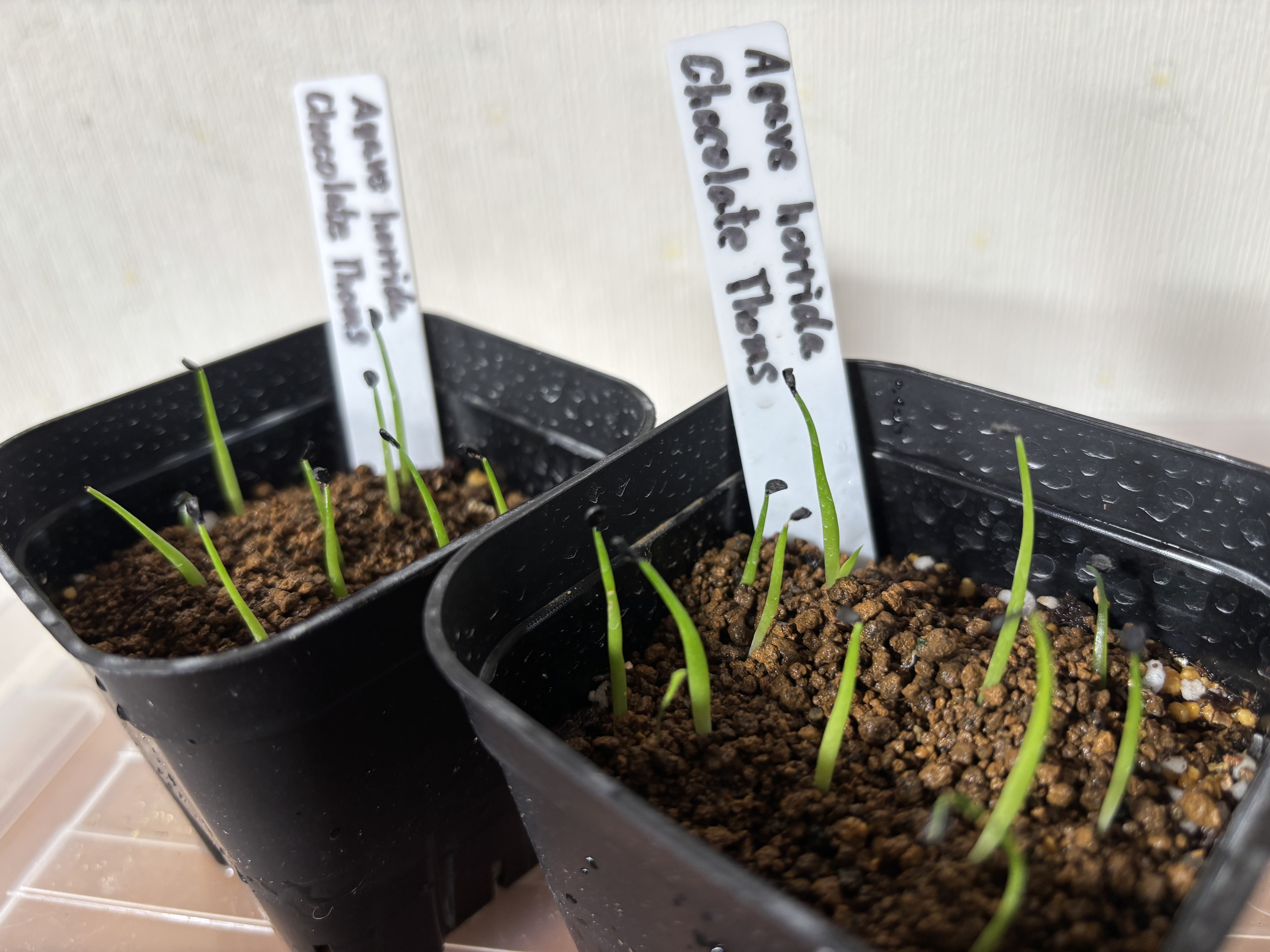 [その他(用土/管理方法)]メネデール液に腰水、観葉植物用種まき用土を使用し播種、一般住宅(一軒家)25度から30度で室内管理