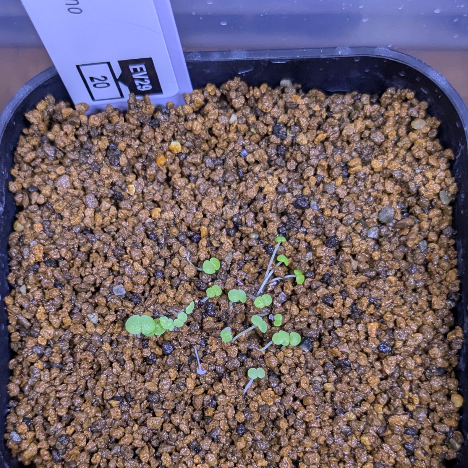 [ 播種日 / 撮影日 ]2025/07/09播種 2025/08/4撮影[ 播種数 / 発芽数 ]約20粒/ 15粒[ その他(用土や管理方法など)]赤玉土に播種しました。屋内で腰水管理。