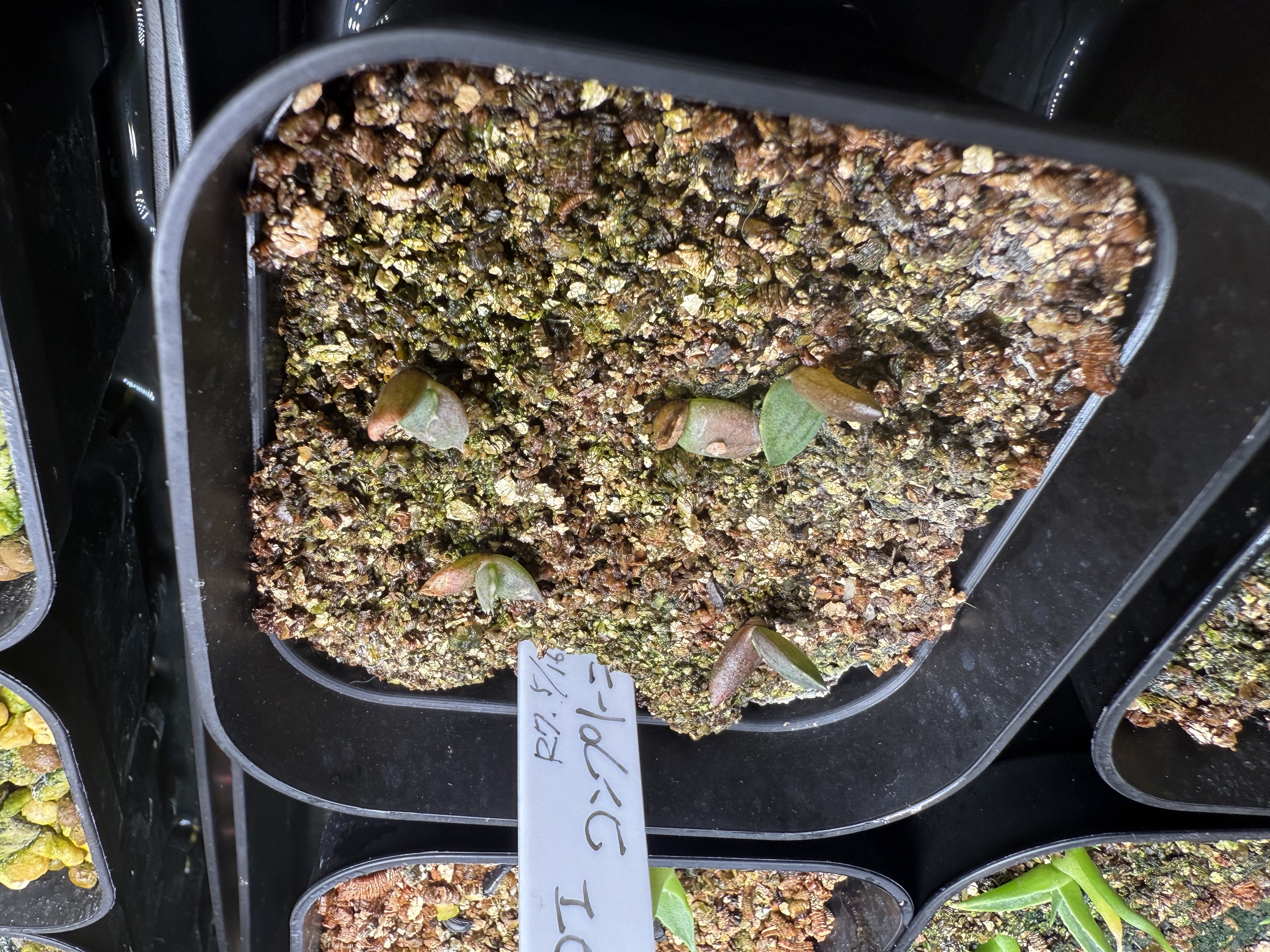 情報が少ないのでいつも通りに播種前ベンレート+メネデール溶液に12時間程度浸漬 赤玉、鹿沼メインの用土に細目のバーミキュライトを敷き播種、25〜30度で腰水管理