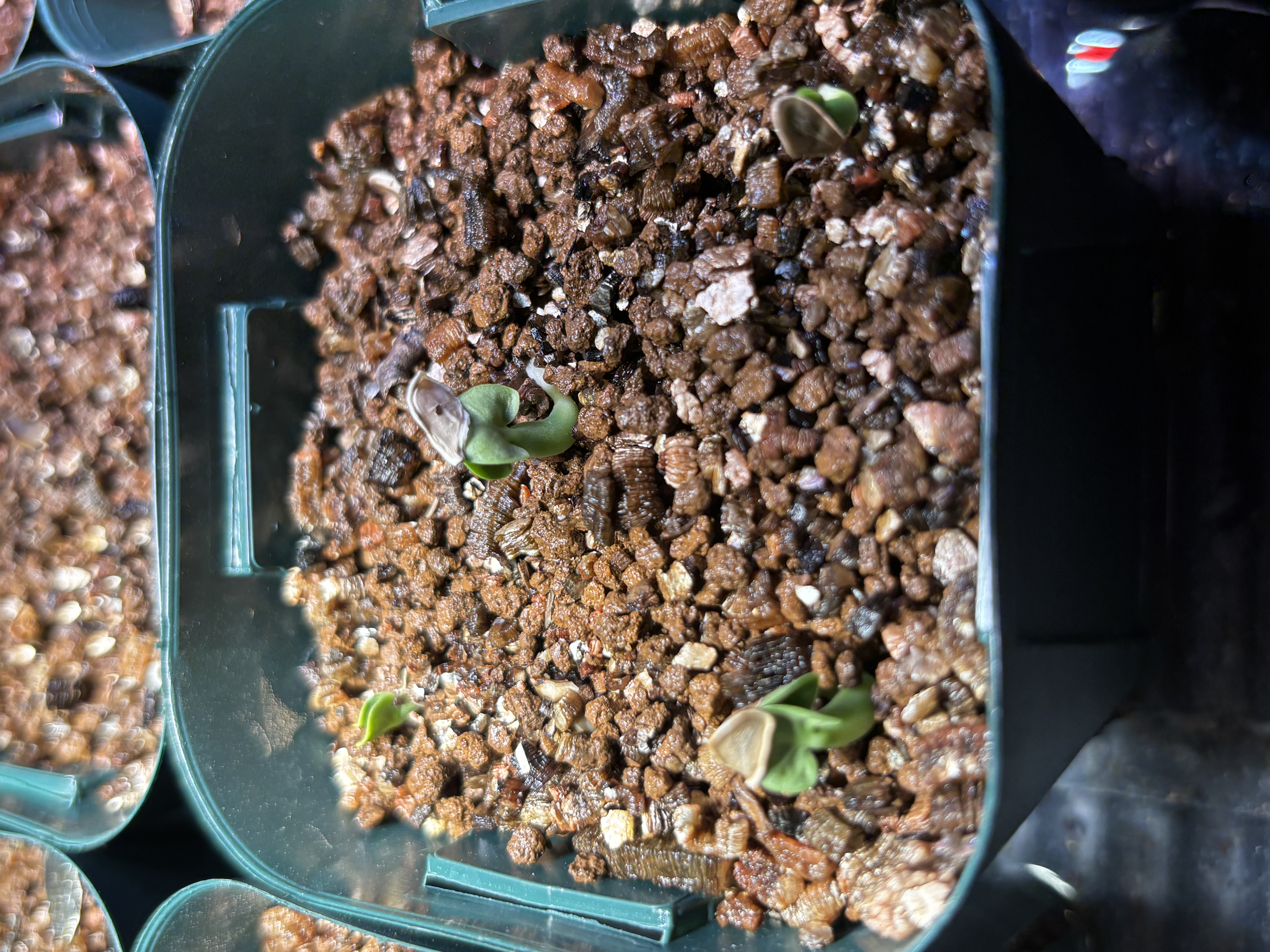 [ 播種日 / 撮影日 ]2025/8/7播種 2025/8/15撮影[ 播種数 / 発芽数 ]20粒/ 6粒(現状)[ その他(用土や管理方法など)]