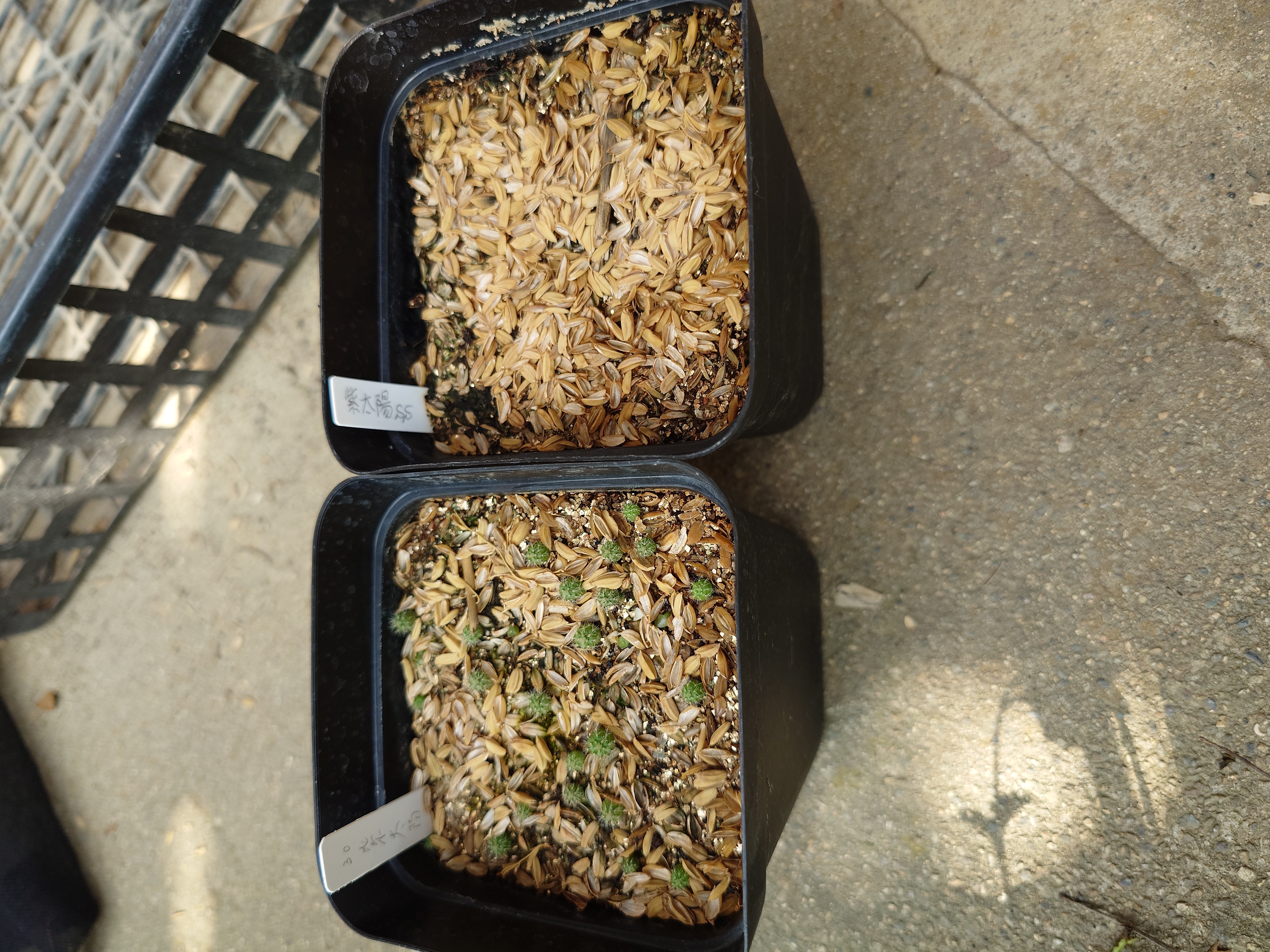 左側の鉢は、全く同環境で播種した他で入手の紫太陽