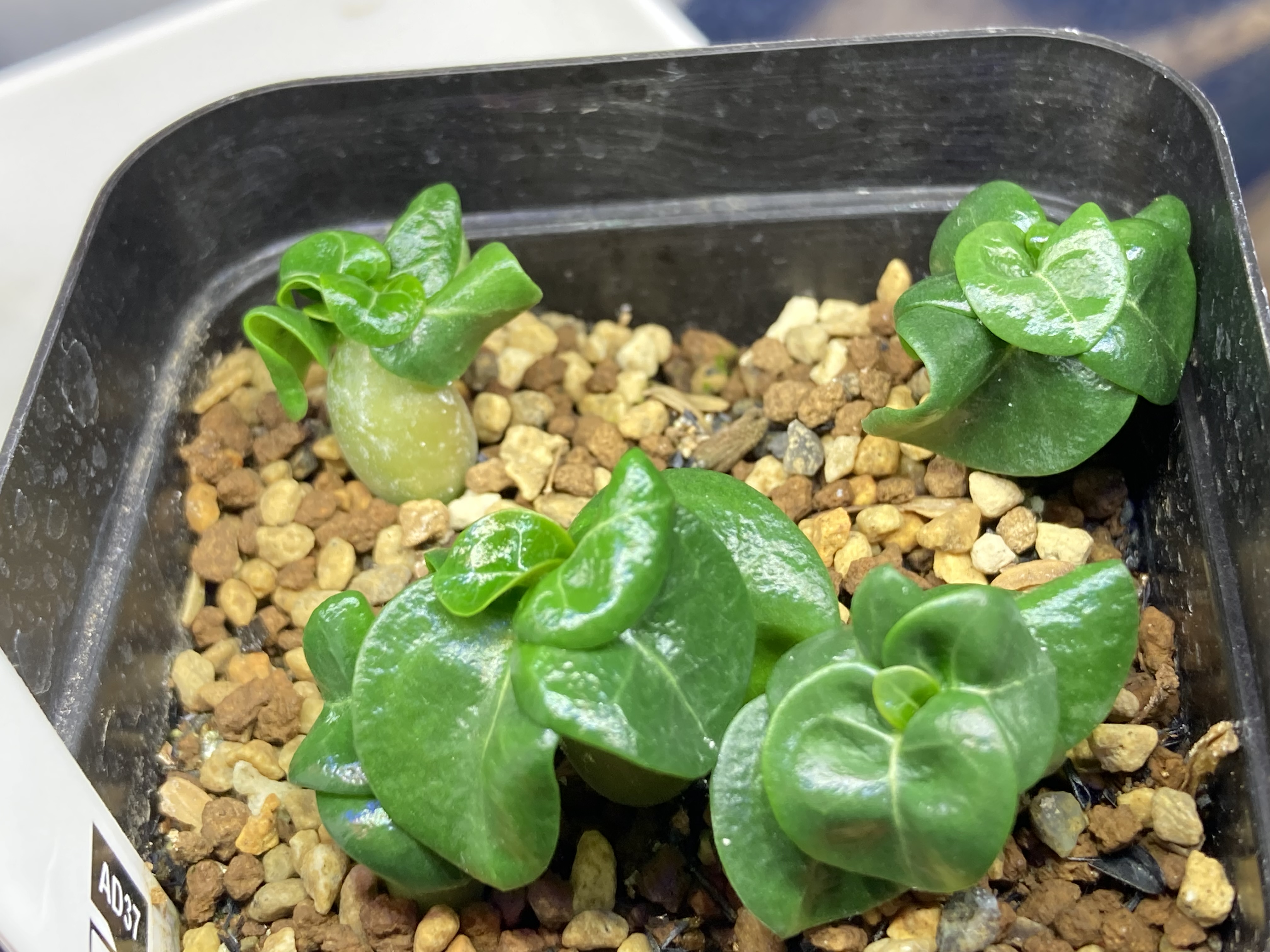 播種前にベンレート+メネデール溶液に1日程度浸漬コーデックス用土の上に赤玉メインの用土に細目のバーミキュライトを敷き播種、27〜31度で室内管理