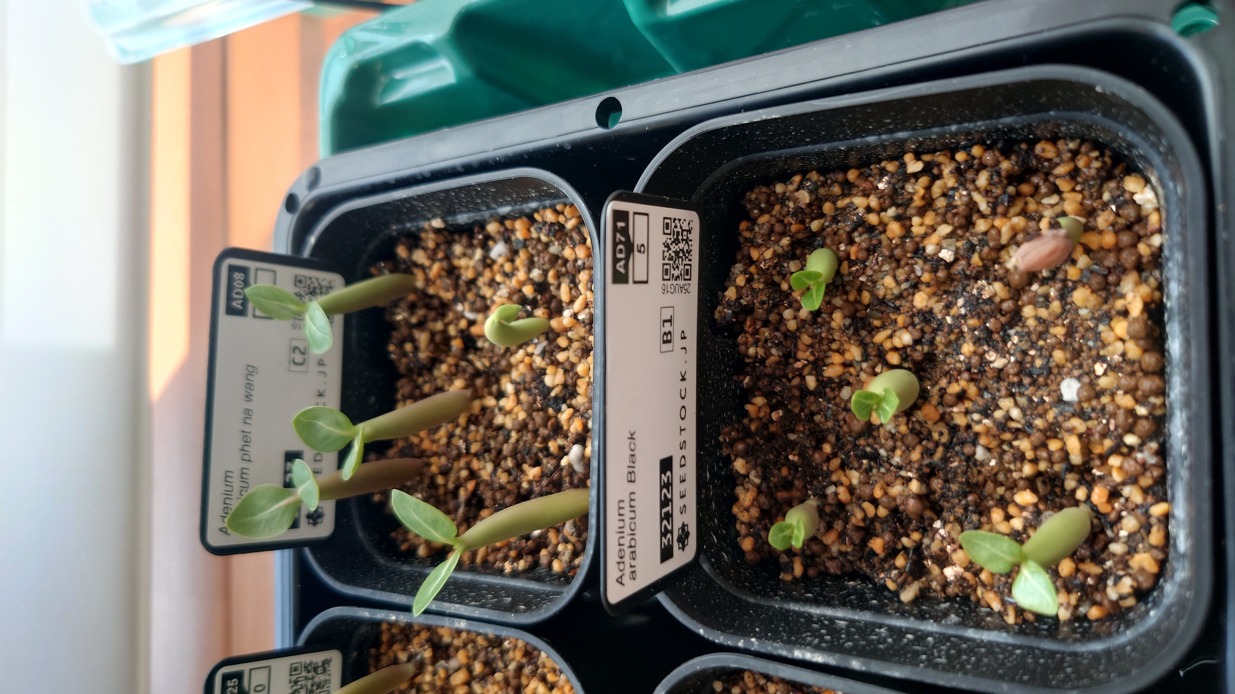 1粒はジフィーセブンを、蓋付き容器に入れて育成ライトを当てた状態で5日後に発芽