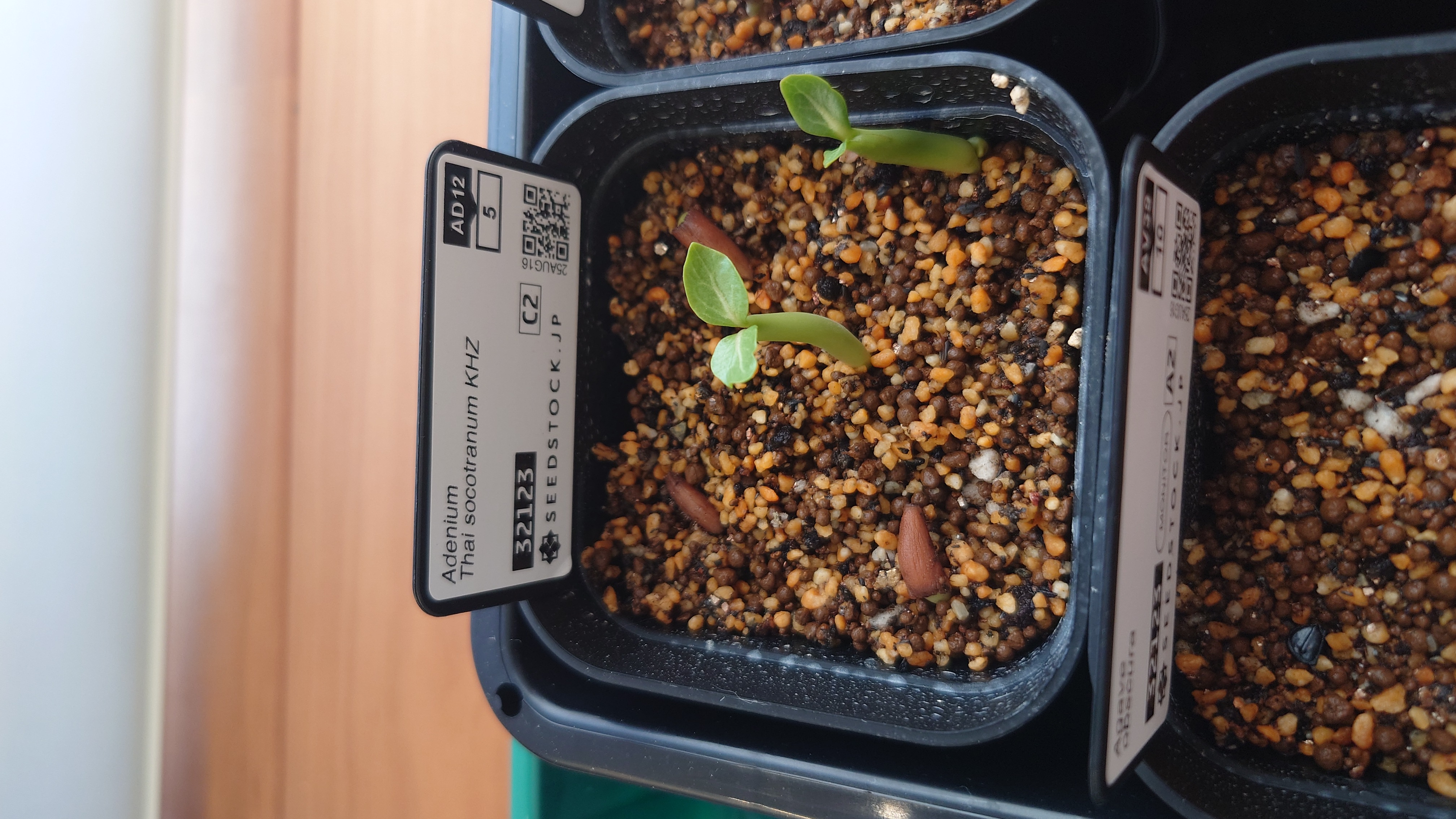 1粒はジフィーセブンを、蓋付き容器に入れて育成ライトを当てた状態で4日後に発芽