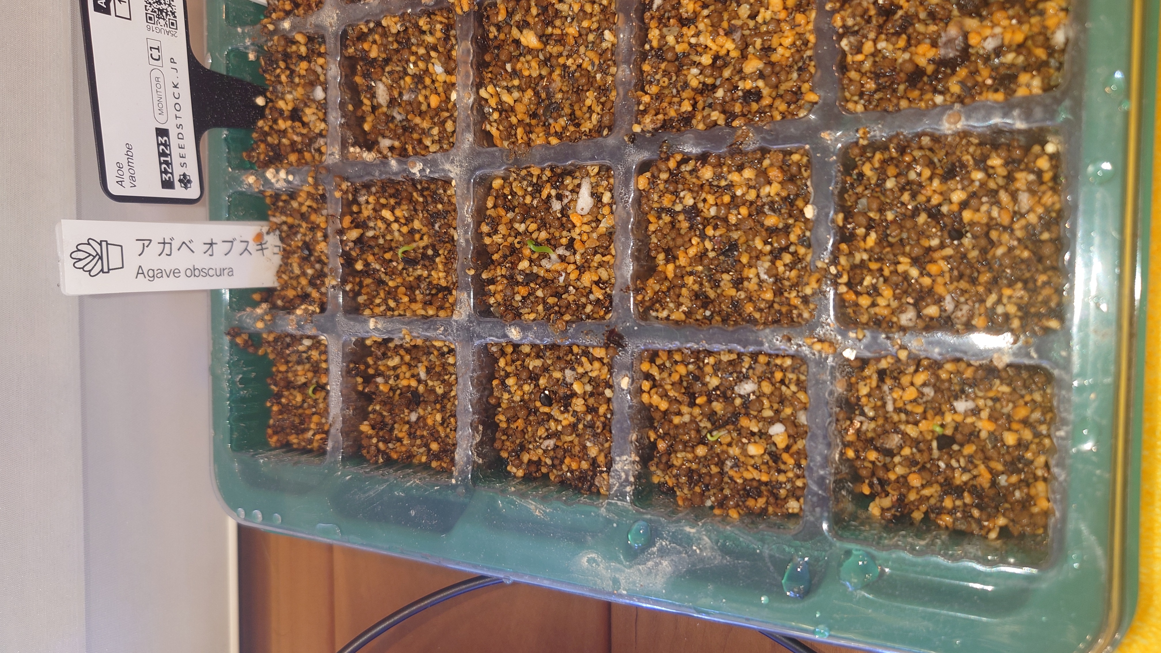 2粒はジフィーセブンを、蓋付き容器に入れて育成ライトを当てた状態で4日後に1粒発芽