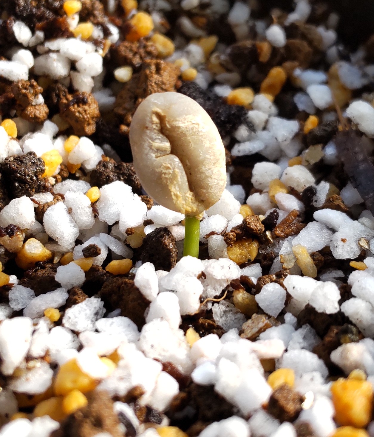 コーヒー種子が土から出た時点で流水で洗浄し、