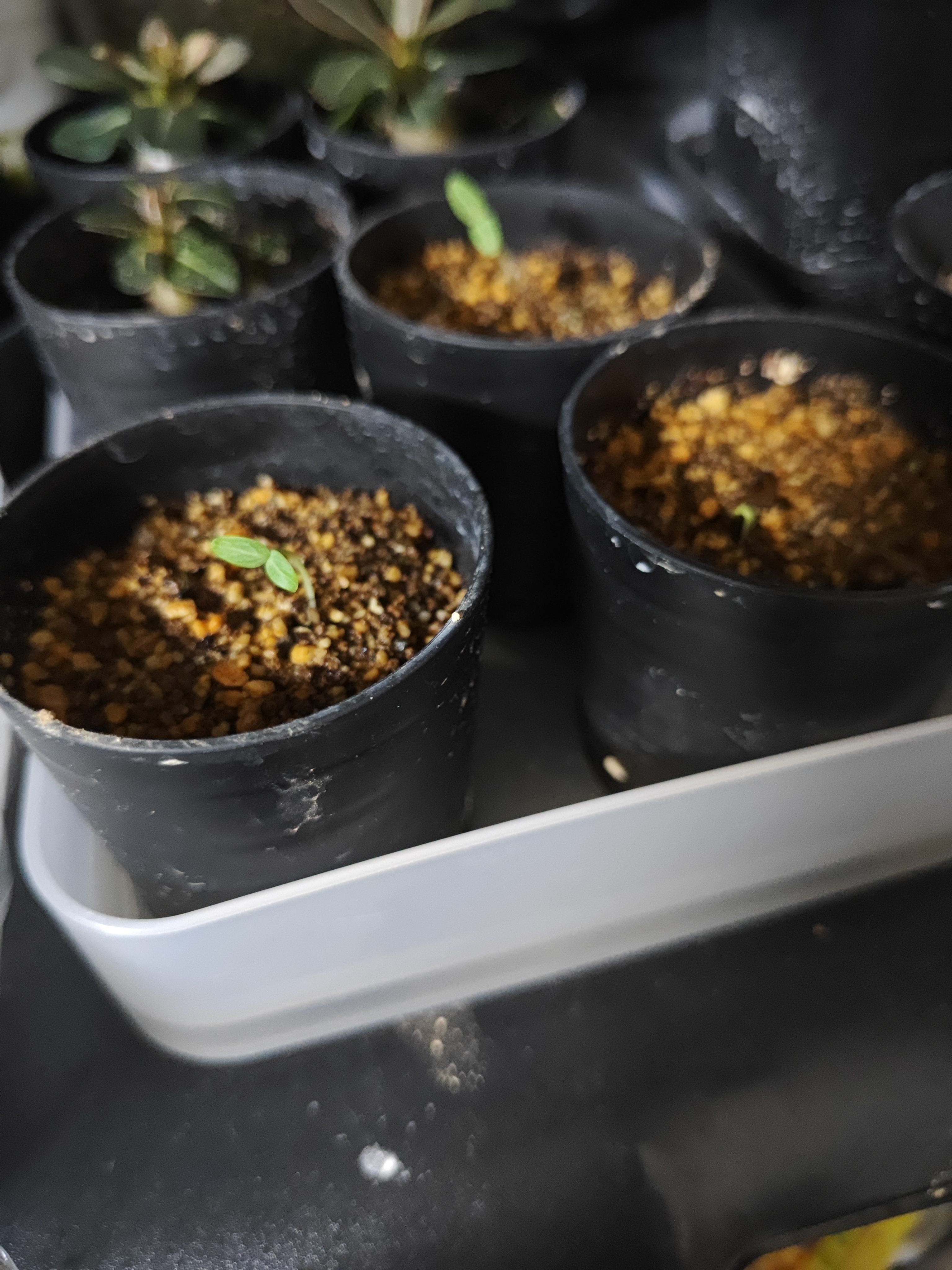 市販の種まき培養土上に播種。うっすらと覆土。室温20度〜28度程度で腰水管理。