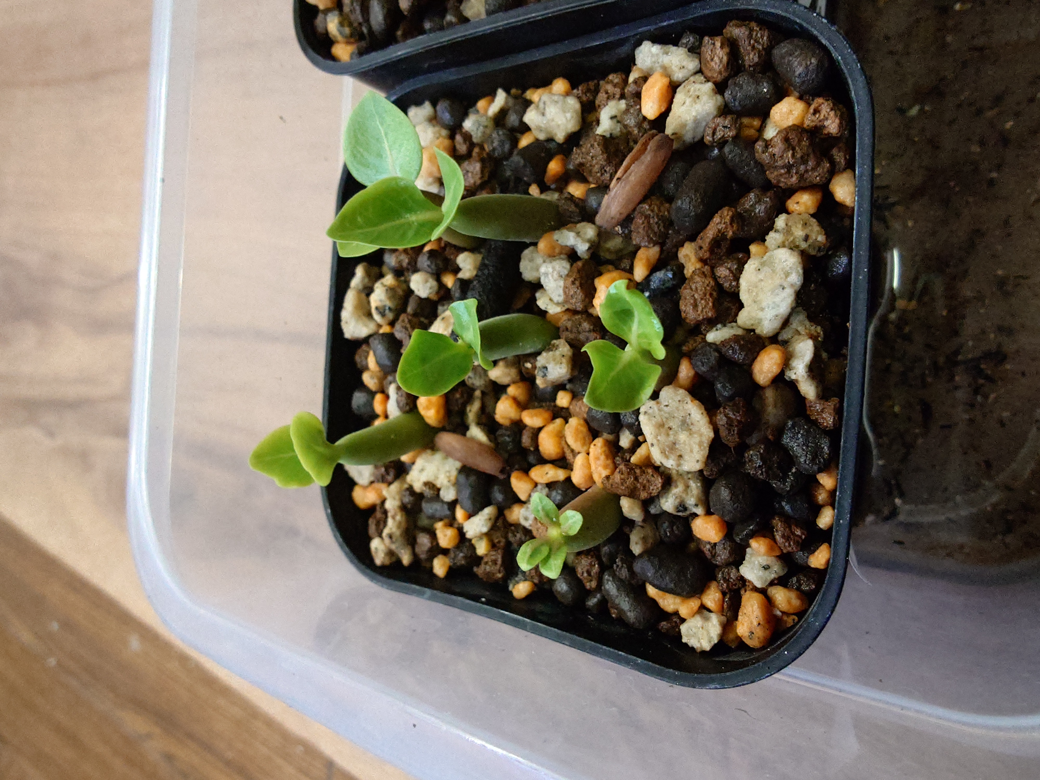 赤玉細粒と種まき用土を混ぜて少し埋まる感じで置きました。
