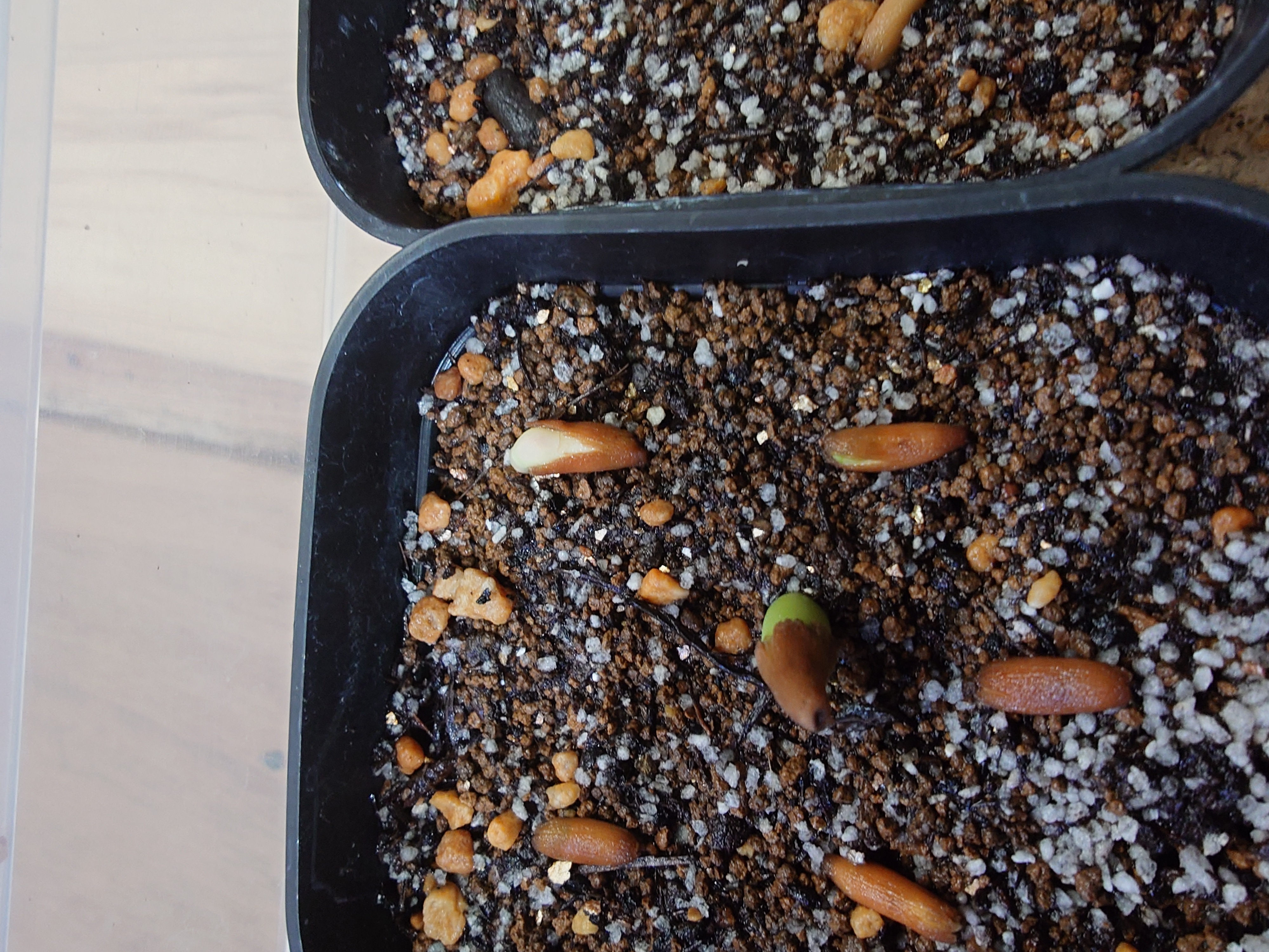 赤玉細粒と種まき用土を混ぜて少し埋まる感じで置きました。
