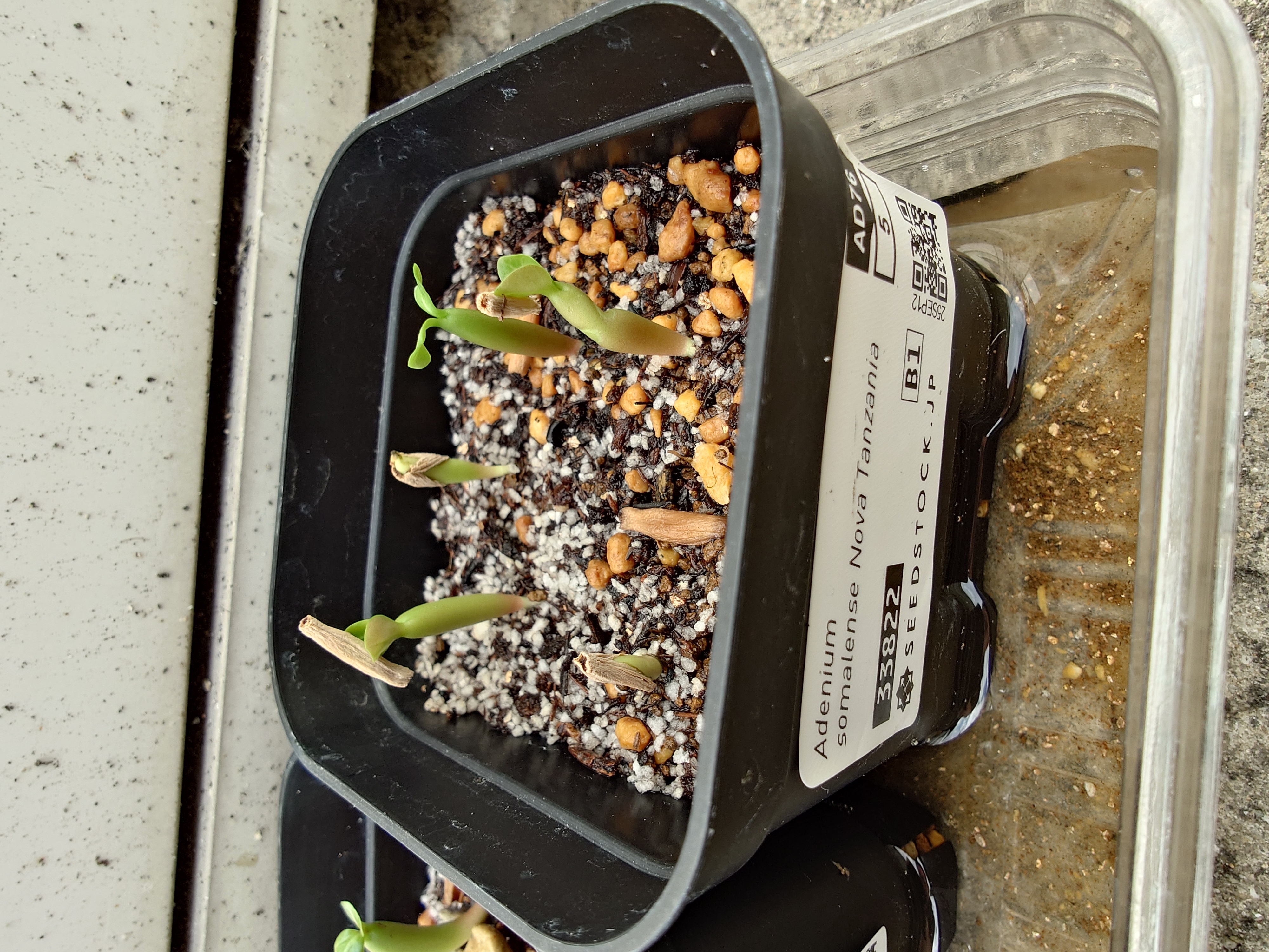 独自の塊根植物用土の上に種まき用土と赤玉細粒を混ぜた土に乗っけつました。