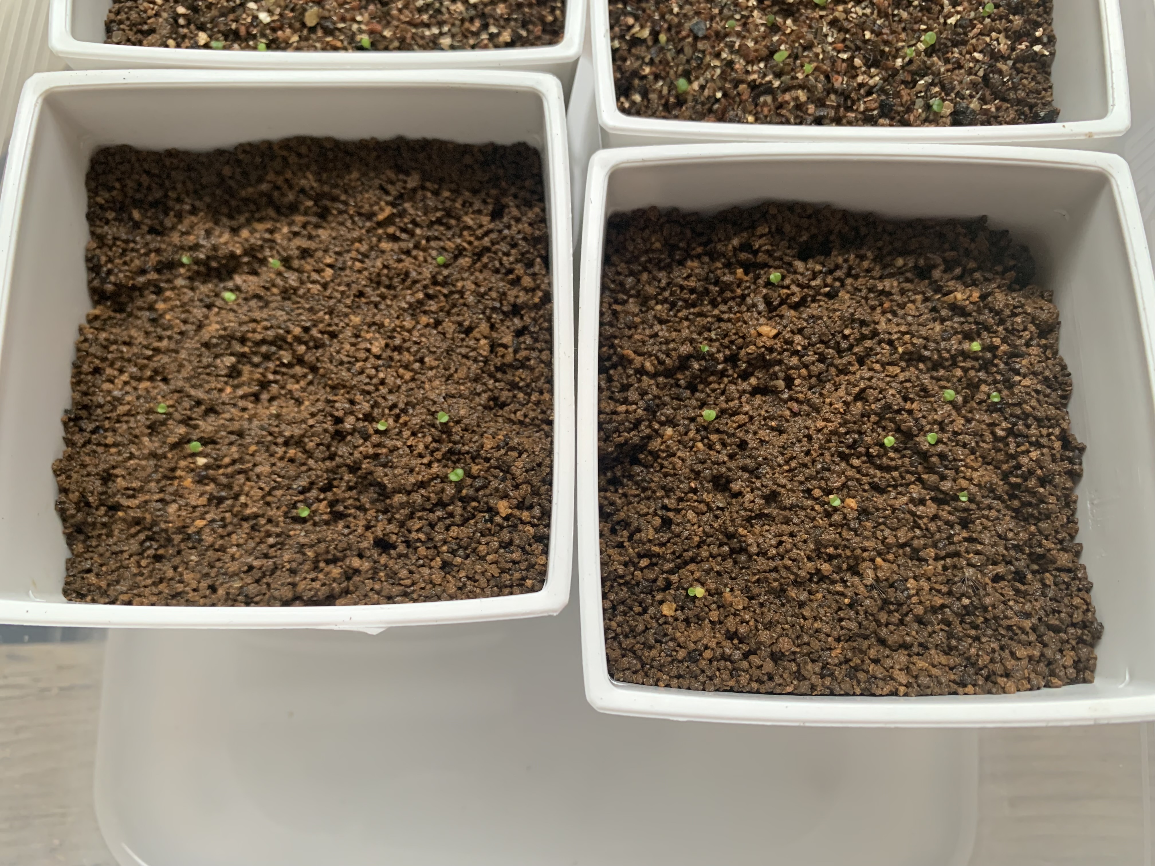 [ 播種日 / 撮影日 ]2025/9/27播種 2025/10/9撮影[ 播種数 / 発芽数 ]20粒購入/ 21粒発芽[ その他(用土や管理方法など)]赤玉土メインで表面に芝の目土