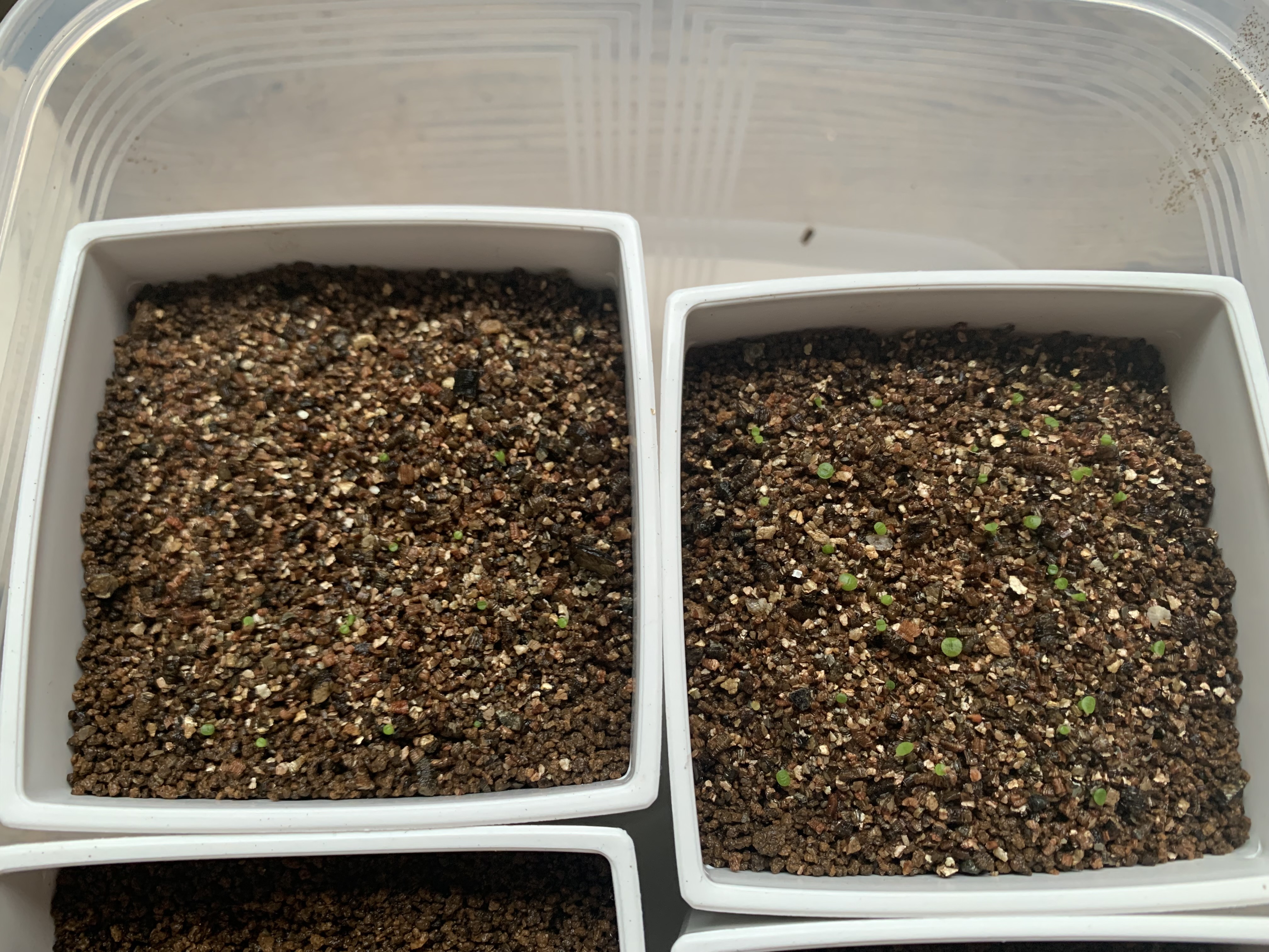 [ 播種日 / 撮影日 ]2025/9/27播種 2025/10/9撮影[ 播種数 / 発芽数 ]50粒購入/ 48粒発芽[ その他(用土や管理方法など)]赤玉土メイン、表面に芝の目土。
