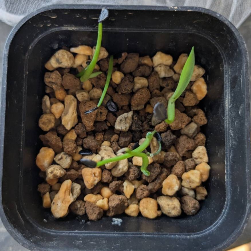 播種前にダコニール+メネデール溶液に1日程度浸漬。腰水管理。発芽率は少し悪かった。