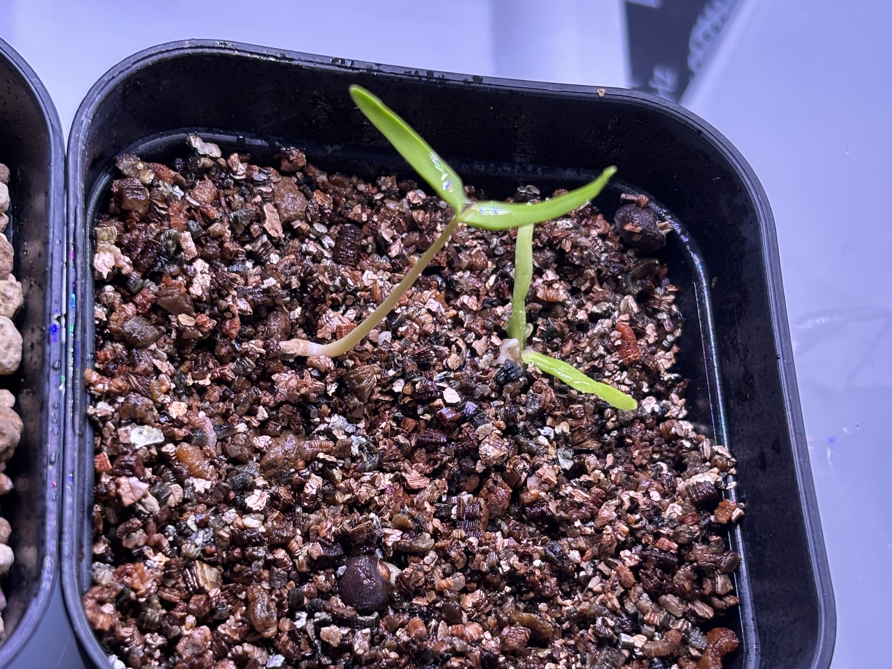 プレステラ90に赤玉小粒を入れ、バーミキュライト細粒を敷いたものを熱湯殺菌し、用土表面に気持ち程度のルートンをまぶして覆土せず、種子を浸漬した液を鉢の1/3程浸かるようにタッパーに入れ腰水管理。