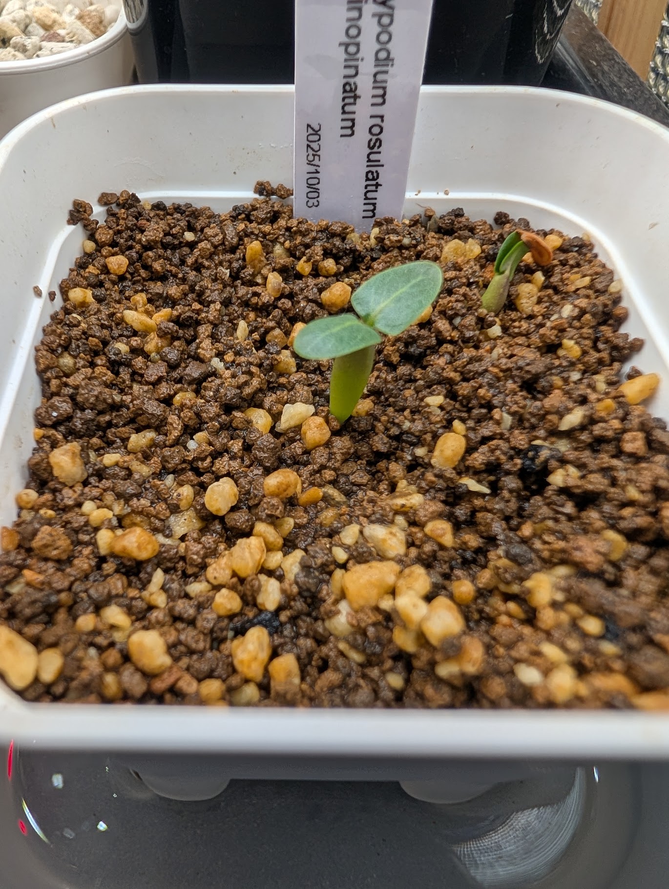 播種6粒 発根確認3粒 発芽2粒