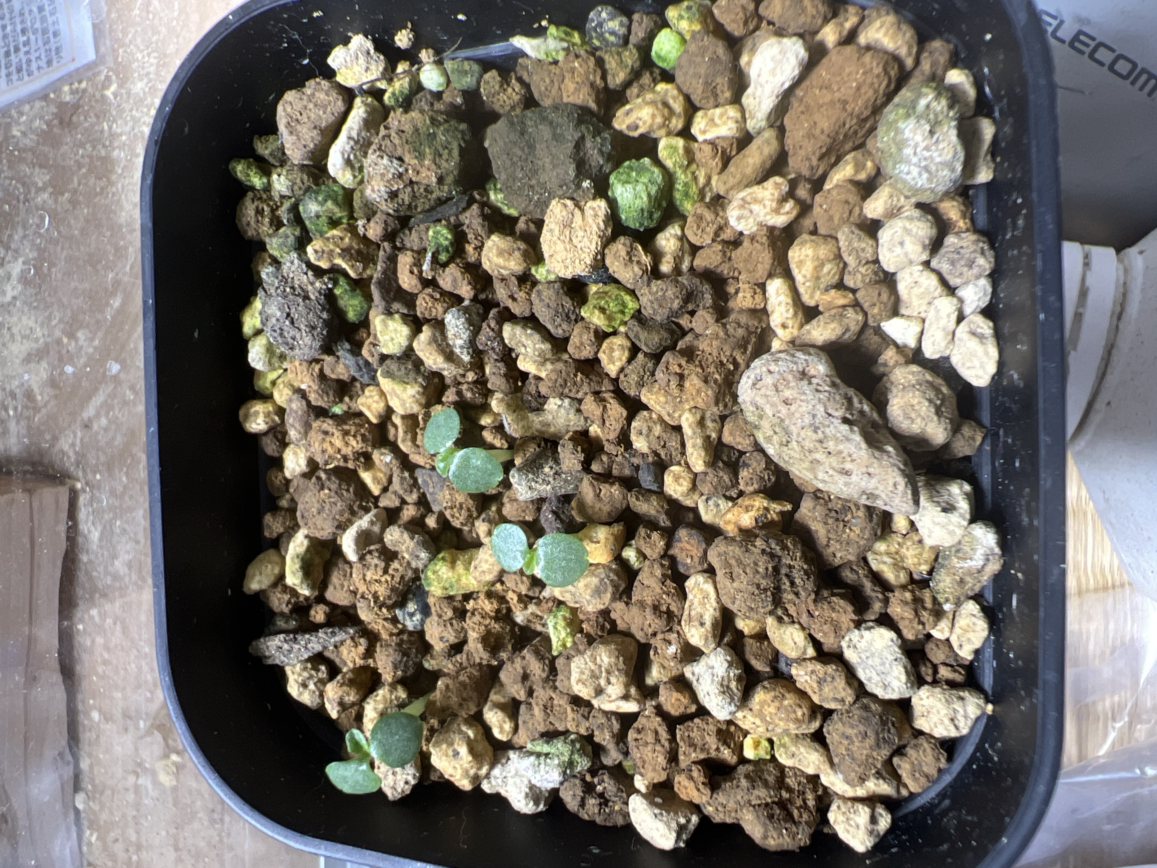 播種前にベンレート、メネデール溶液に一夜つけて赤玉土中心の用土です。