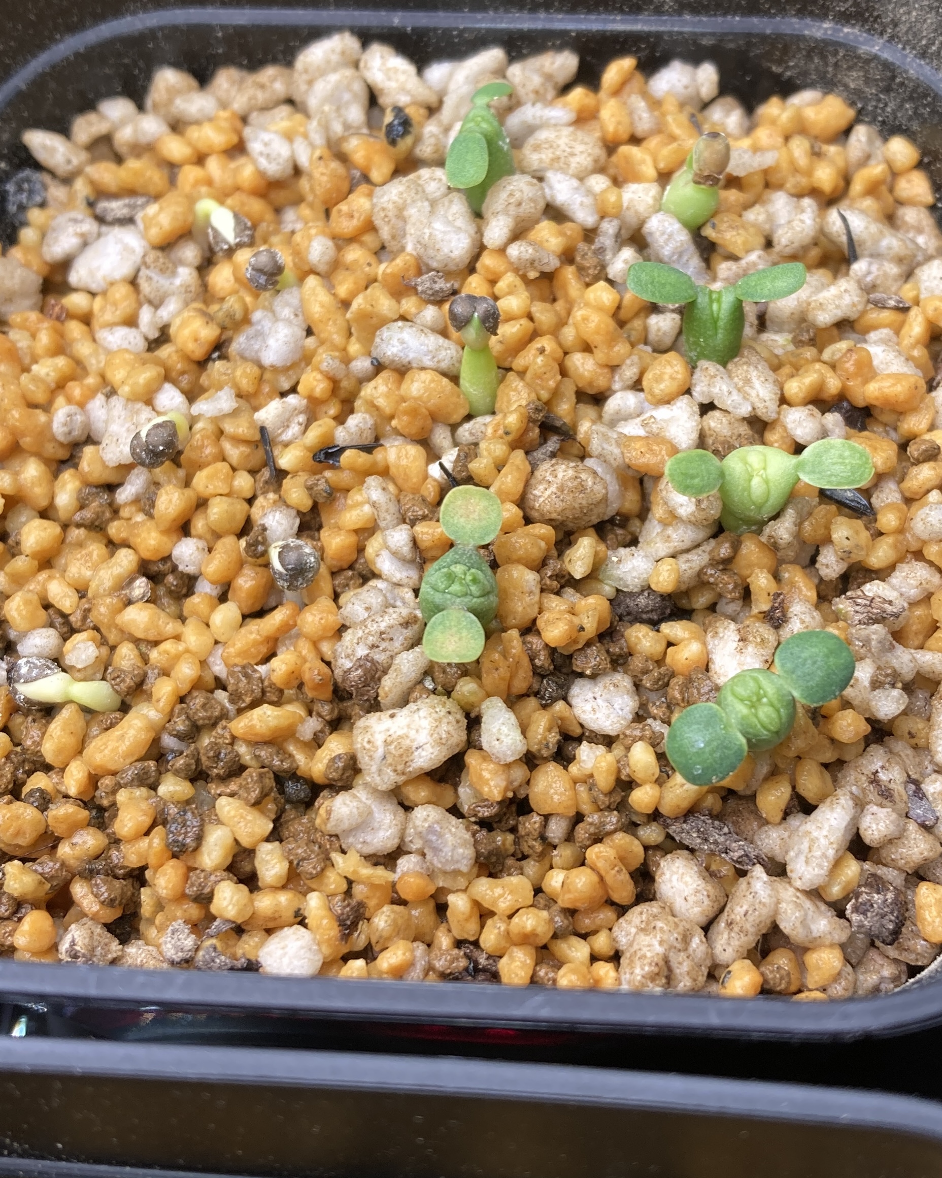 [ 播種日 / 撮影日 ]2025/11/08播種 2025/11/29撮影[ 播種数 / 発芽数 ]12粒/ 11粒[ その他(用土や管理方法など)]播種前にメネデール溶液に3時間浸し、市販の種まき用土に播種