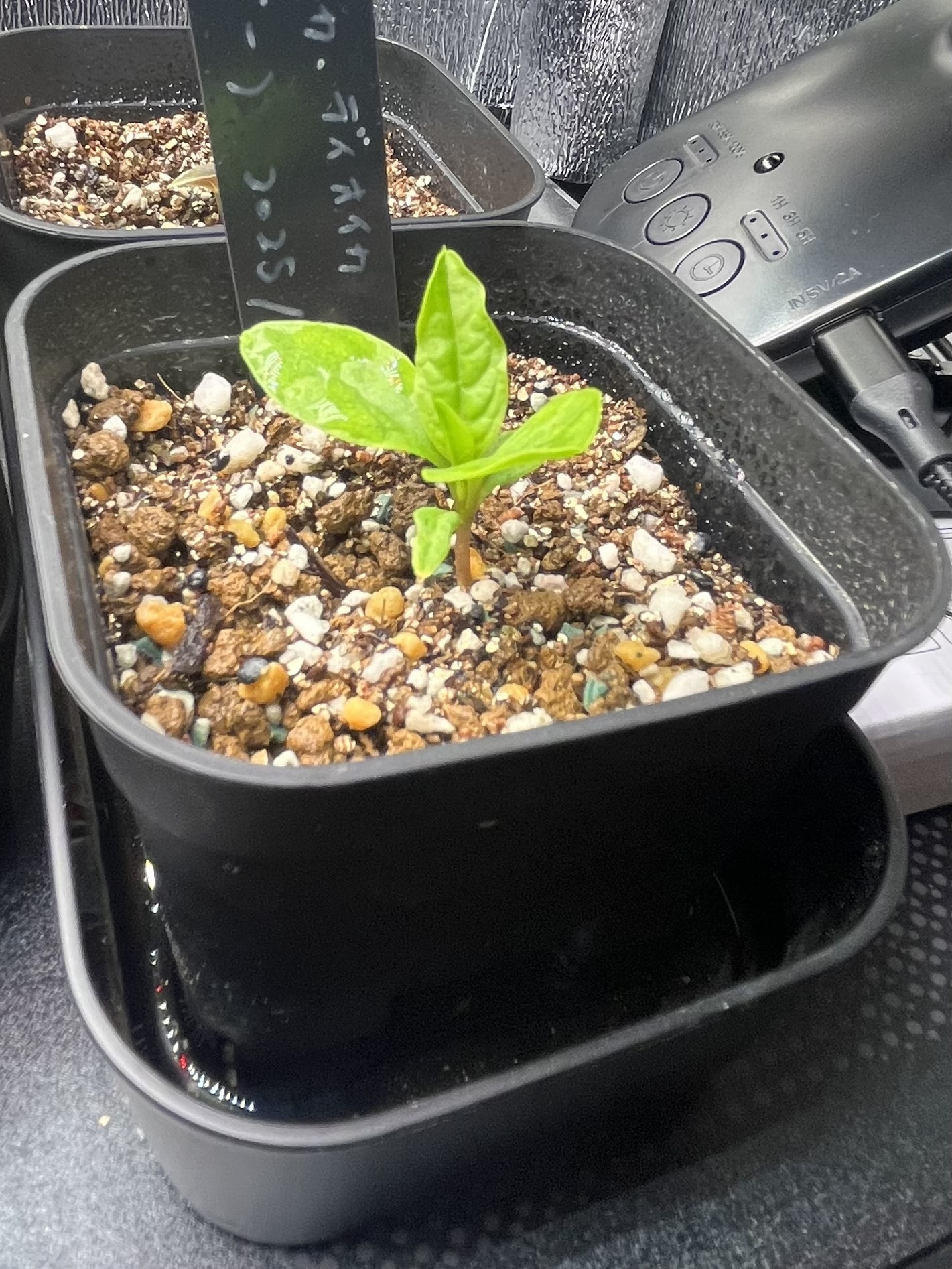 [ 播種日 / 撮影日 ]2025/10/10播種 2025/12/2撮影[ 播種数 / 発芽数 ]12粒/ 1粒播種前にベンレート+メネデール溶液に1日程度浸漬タッパー&キッチンペーパーにて根が出るまで管理
