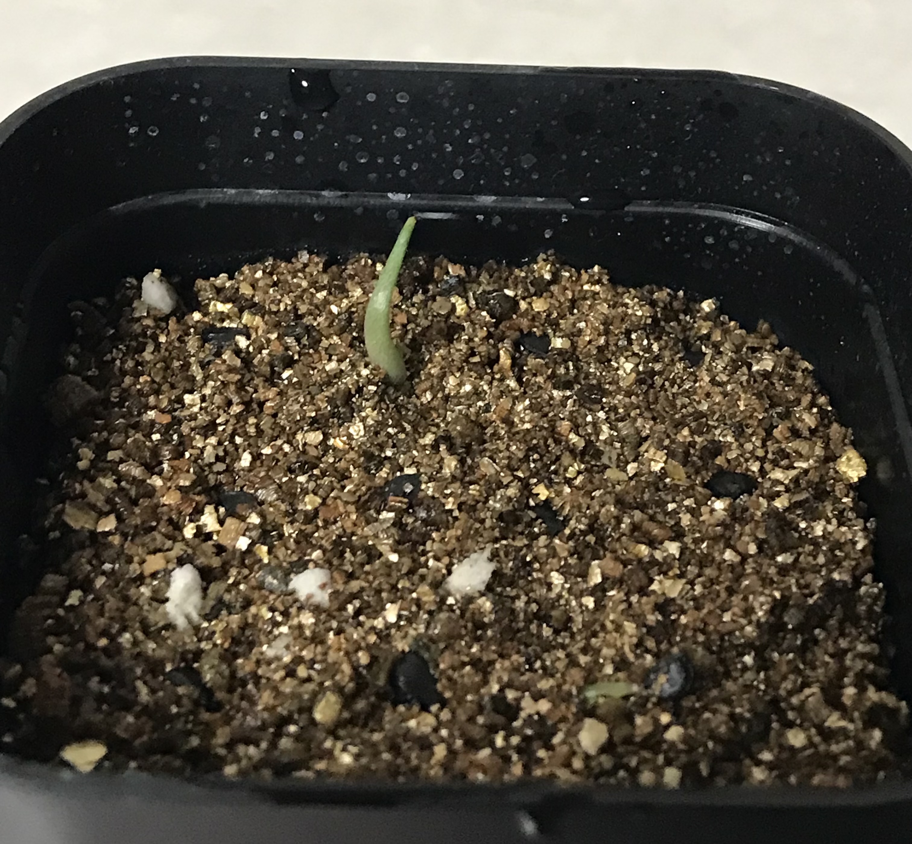 とりあえず同時に購入したパキポと同条件(プラケース温室&腰水、LED有)で管理するも、発芽は12粒中2粒のみでした