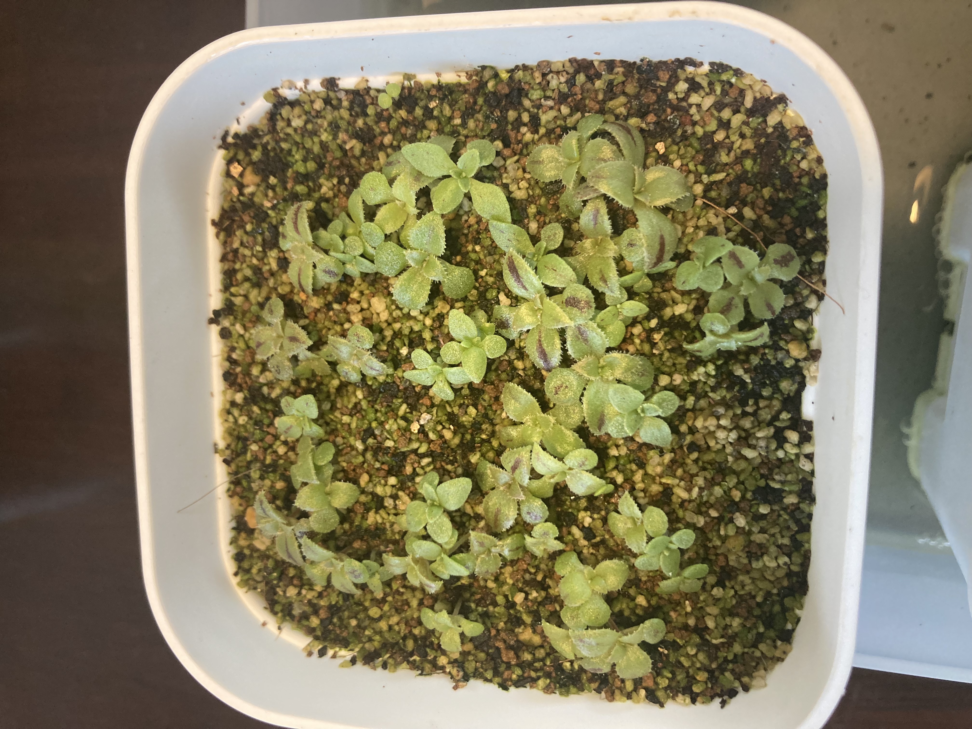 種蒔用土と篩がけした多肉用土のブレンド、1センチ程度の腰水、最低気温17度