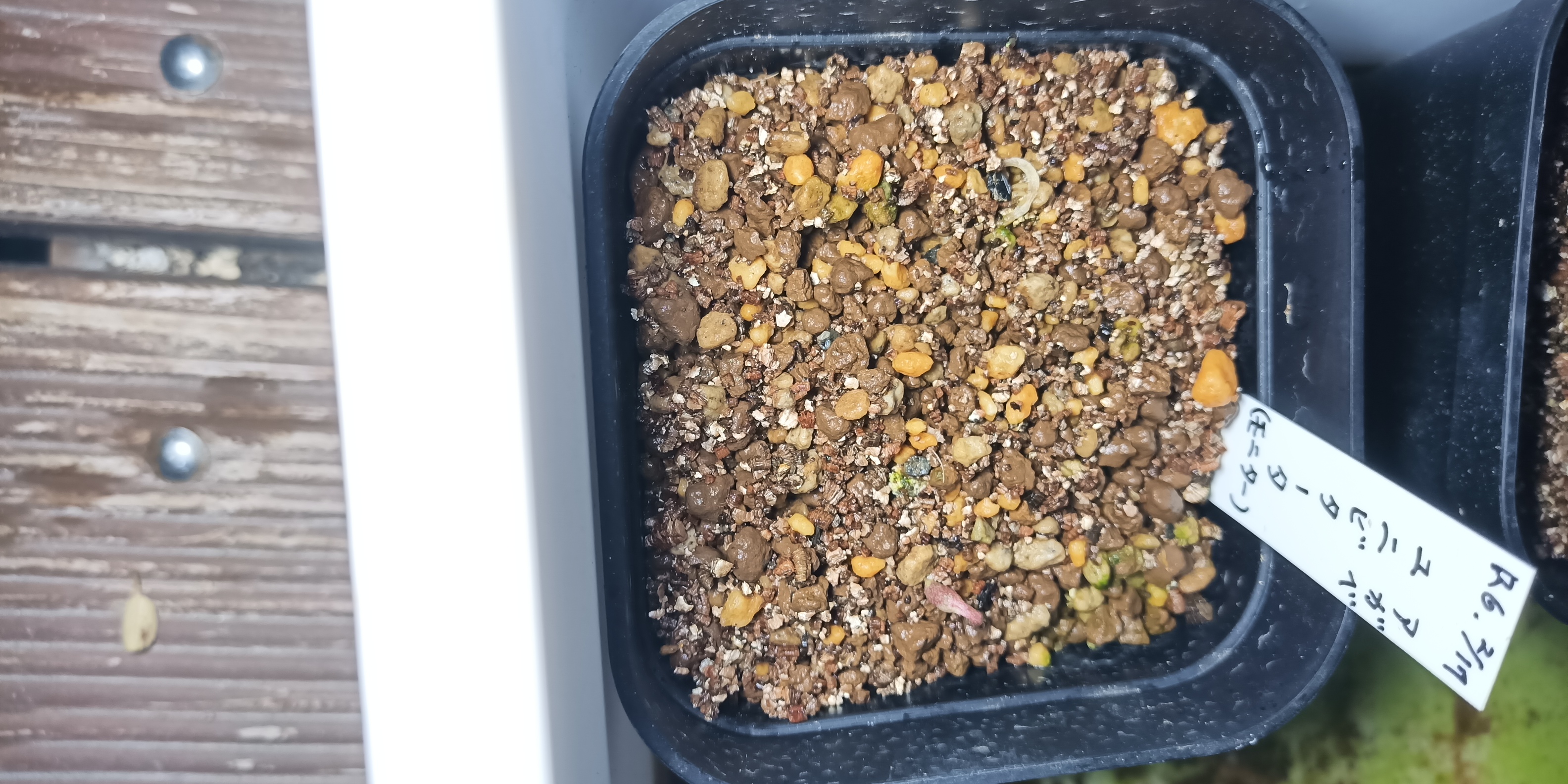 10数粒播種し2粒発芽したが、1つはアルビノで落脱。もう1つも弱々しく、溶けそう。