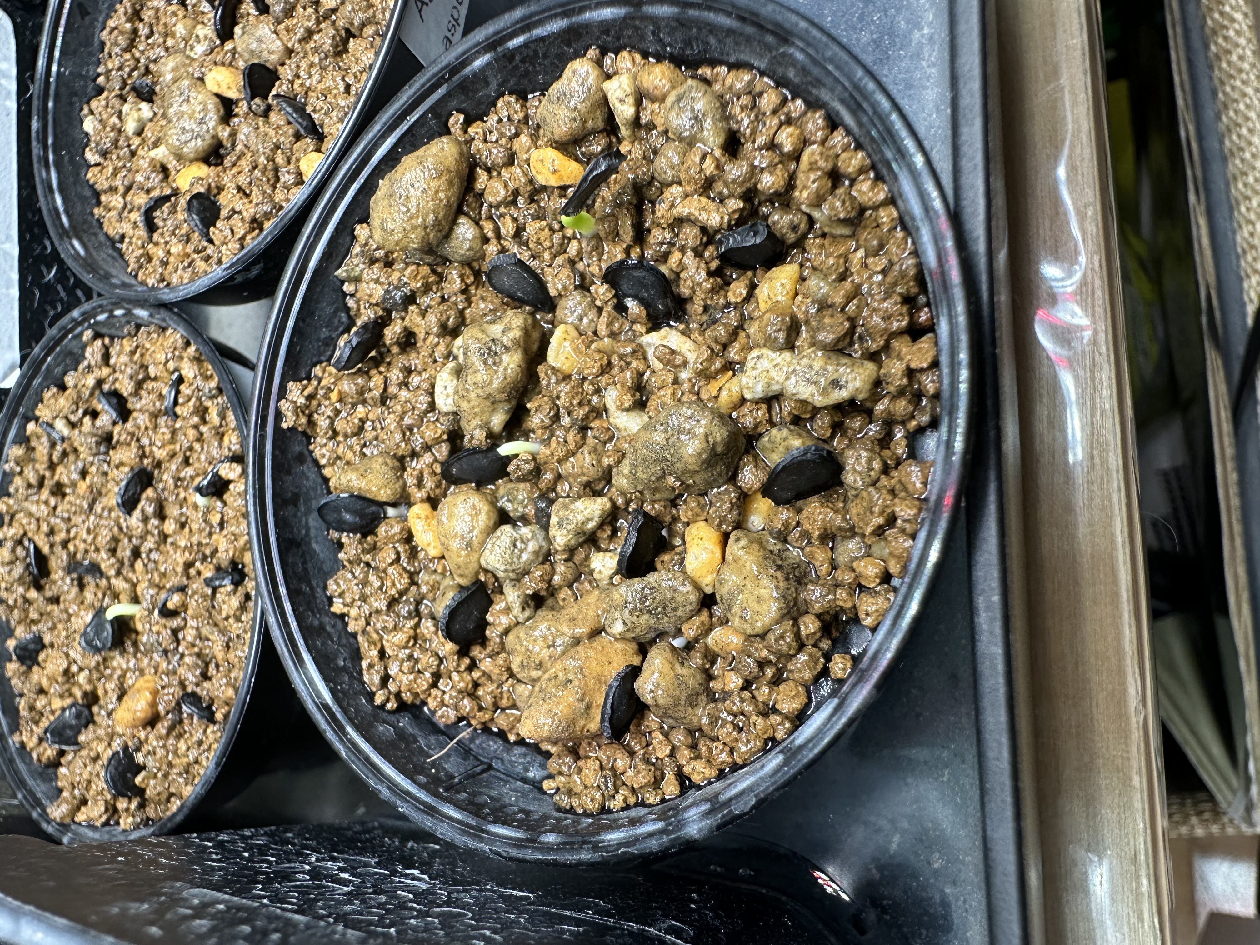 播種から2日で1粒目が発芽、次の日にはもう1粒発芽。