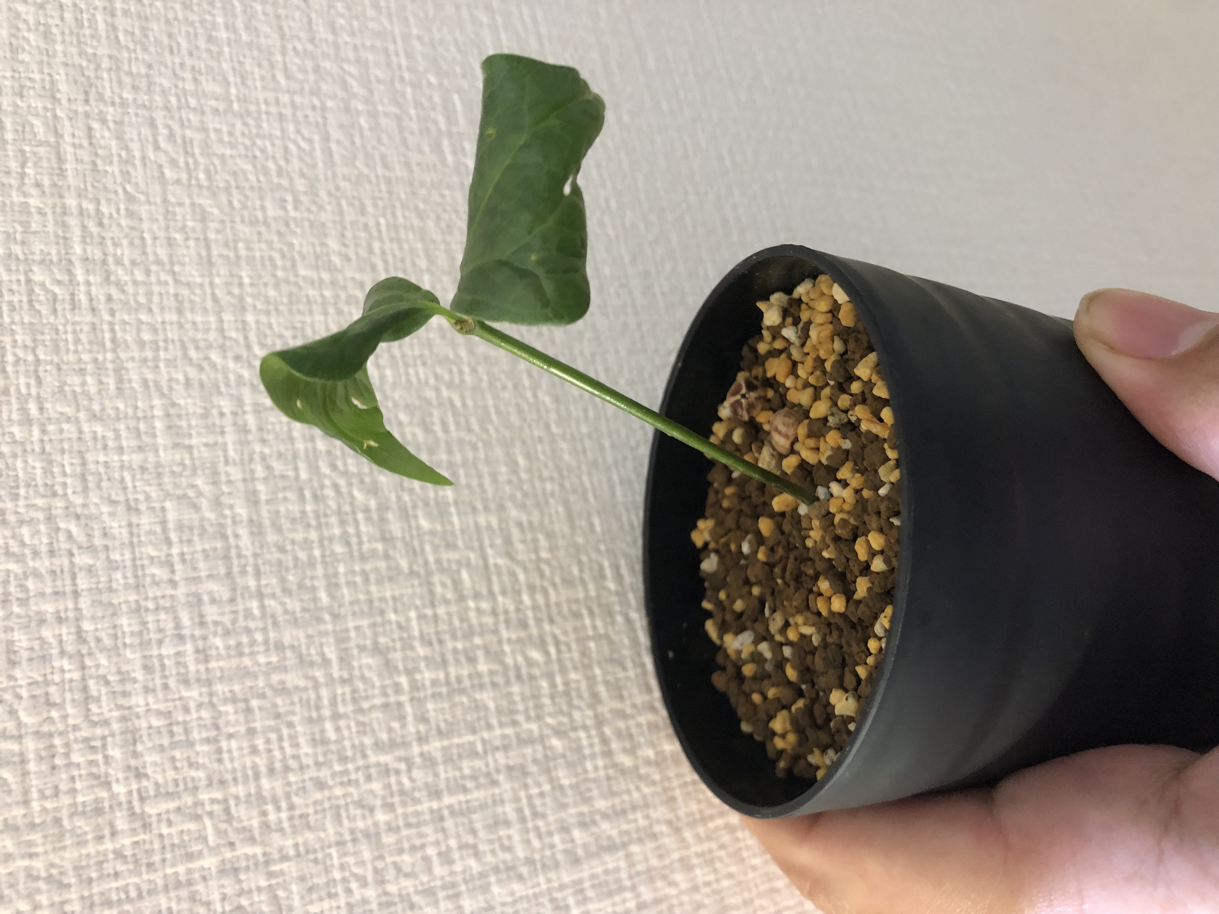 湿らせたキッチンペーパー包んでジップロックで封し25度保温のバケツにドボン。1週間して発根したので鉢上げ。