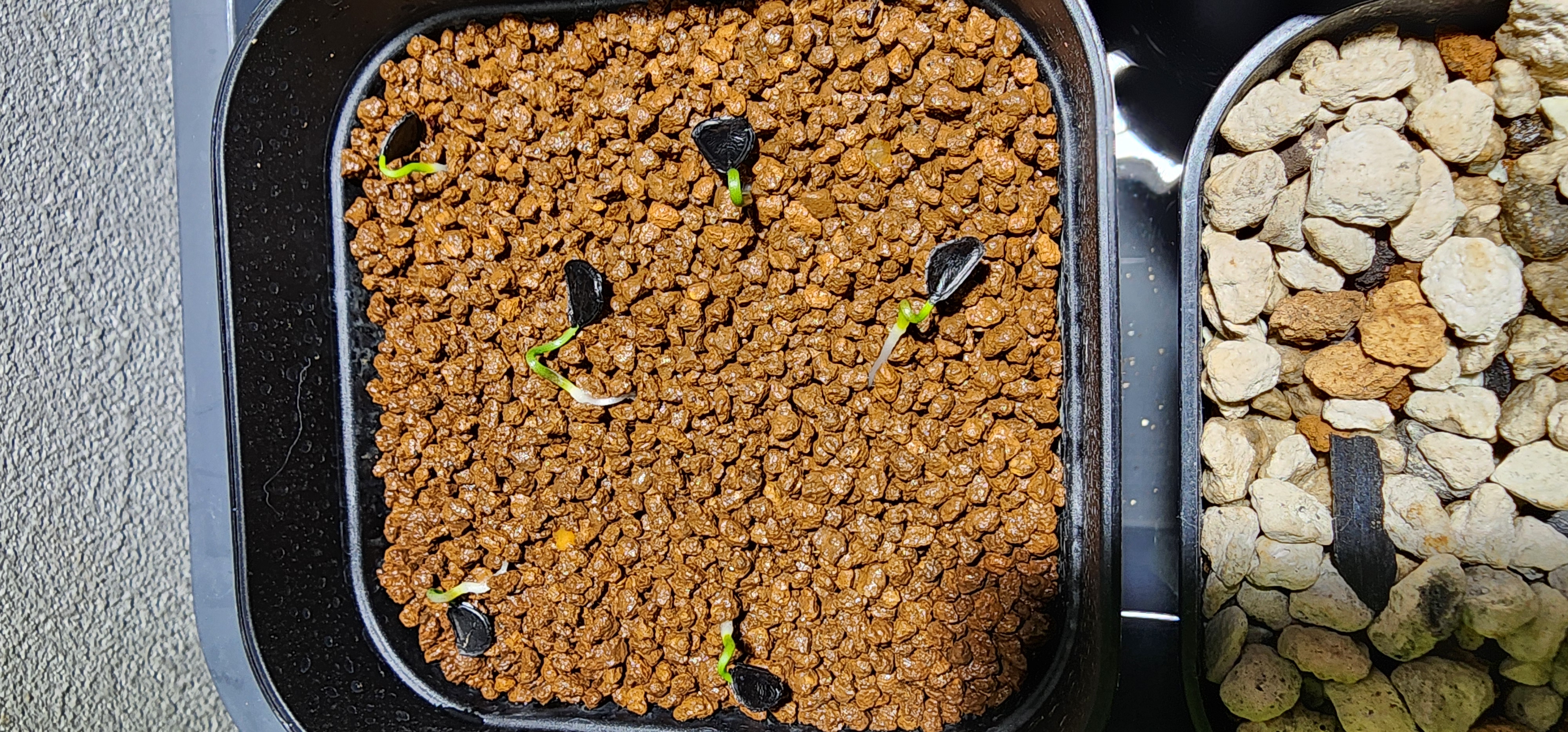 オーソサイド+メネデール液に13時間浸けてから軽石メイン、表層に硬質赤玉土小粒の用土に播種
