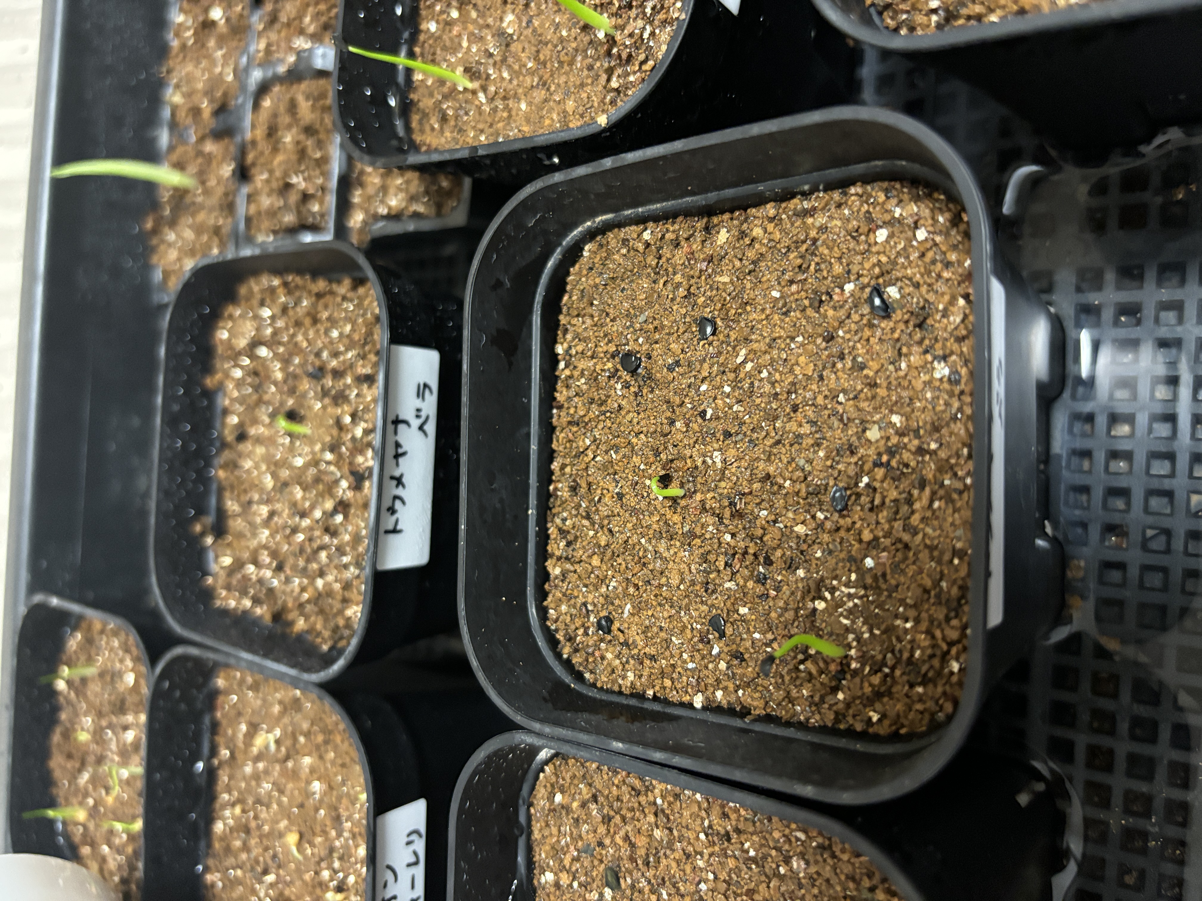 赤玉メインの用土に細目のバーミキュライトを敷き播種、20度〜25度で管理