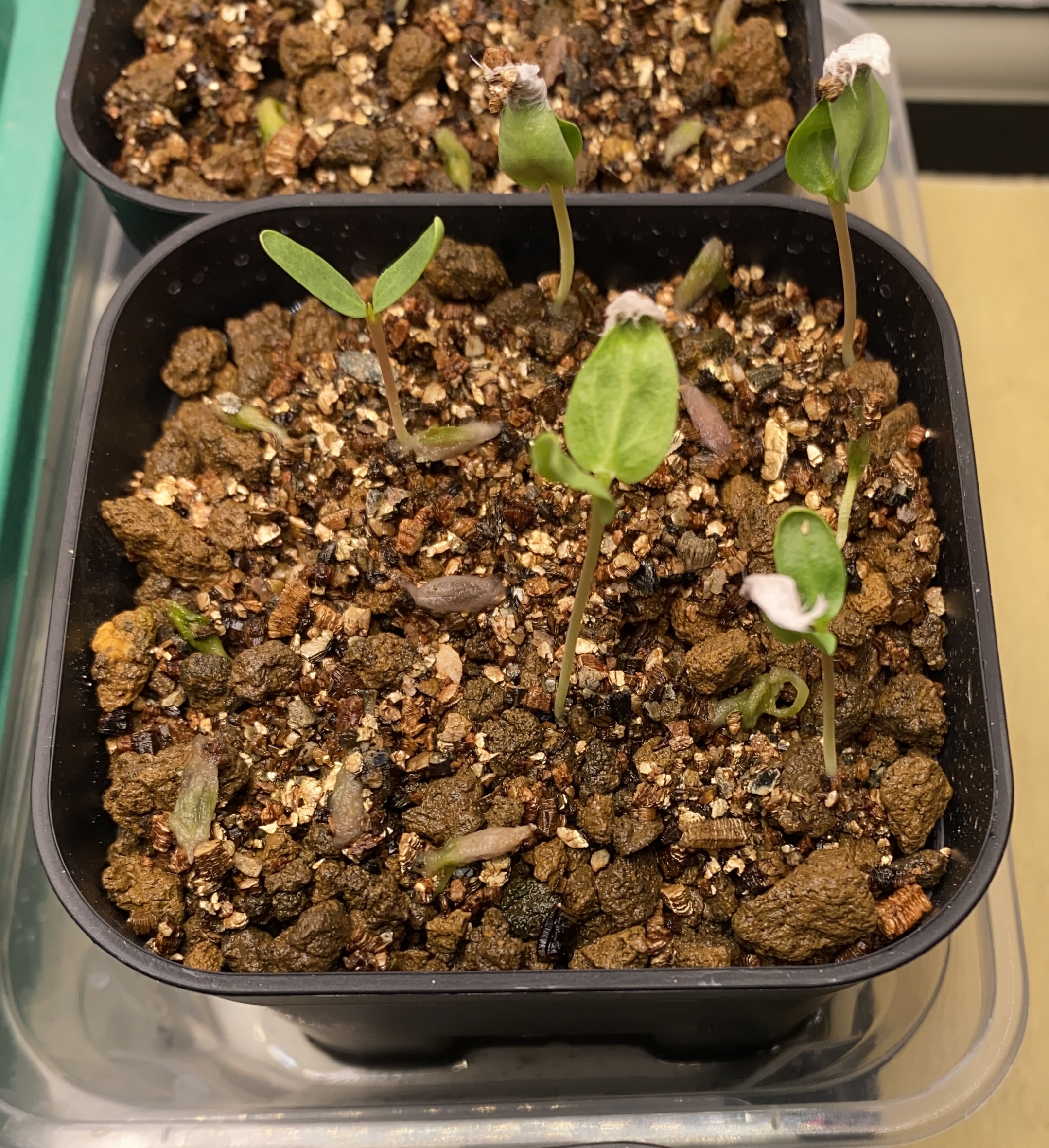 種子が白いもふもふした羽毛みたいなのに入っているので、発芽に時間が掛かるのかな。