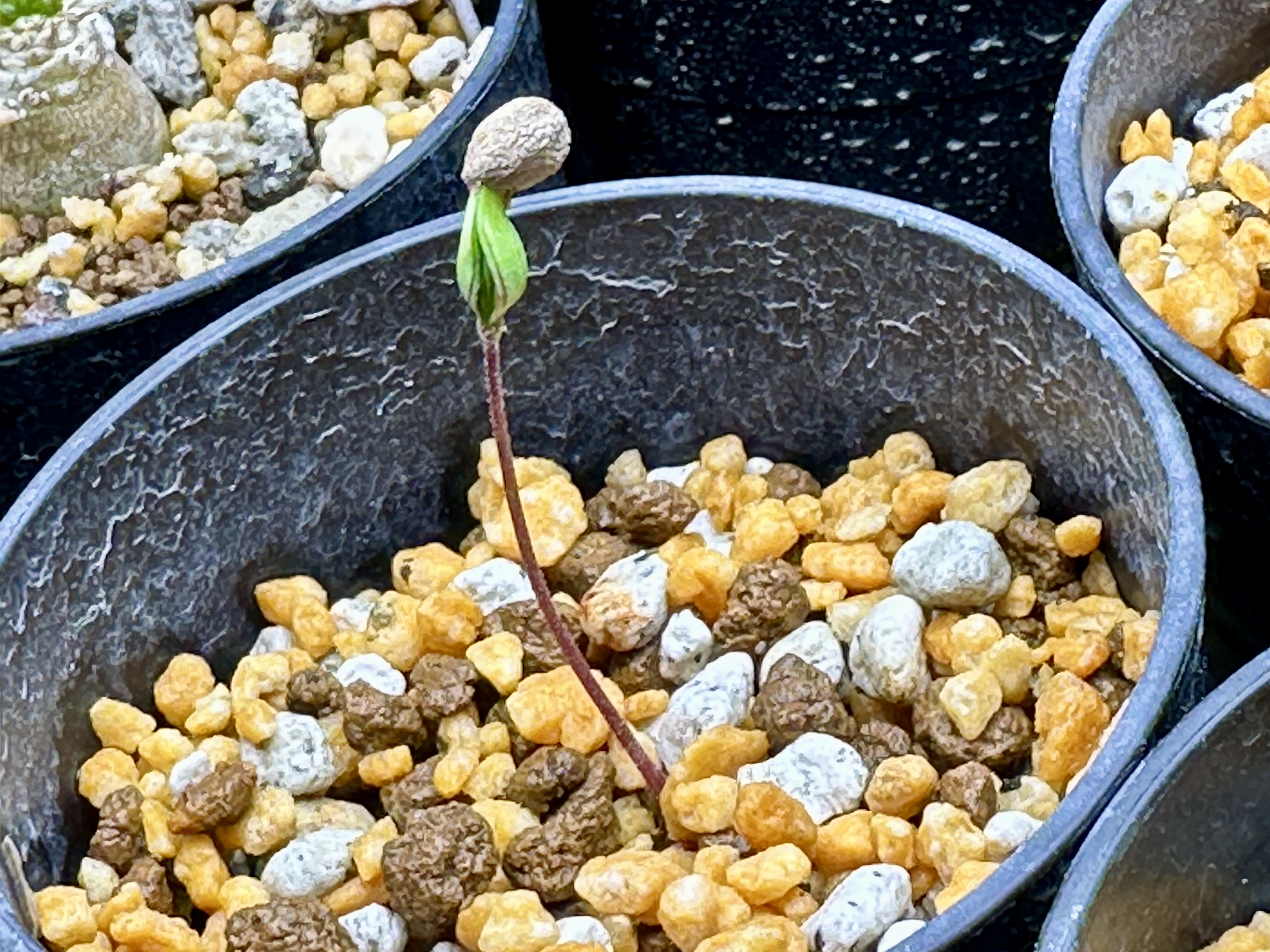 正常に発育中の株は、ご覧の通り殻が外れていないのですが、このまま放置。