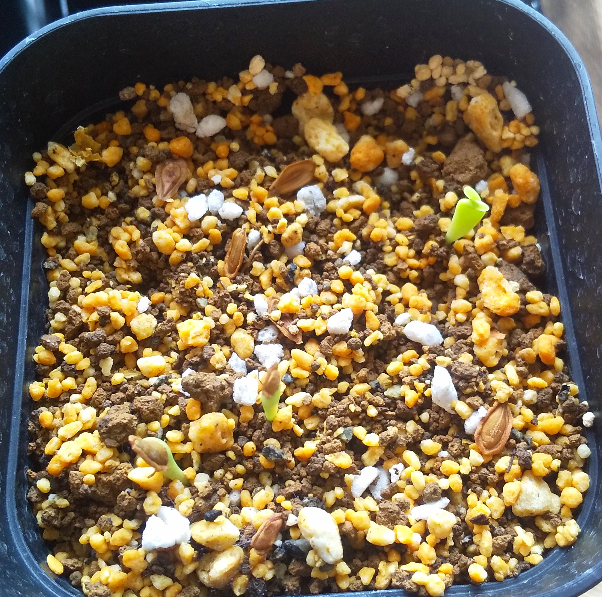 種の様子は良さそうだったが、立ち上がりの数は4割ほど。気温上がったらもう少し発芽するかもしれない。