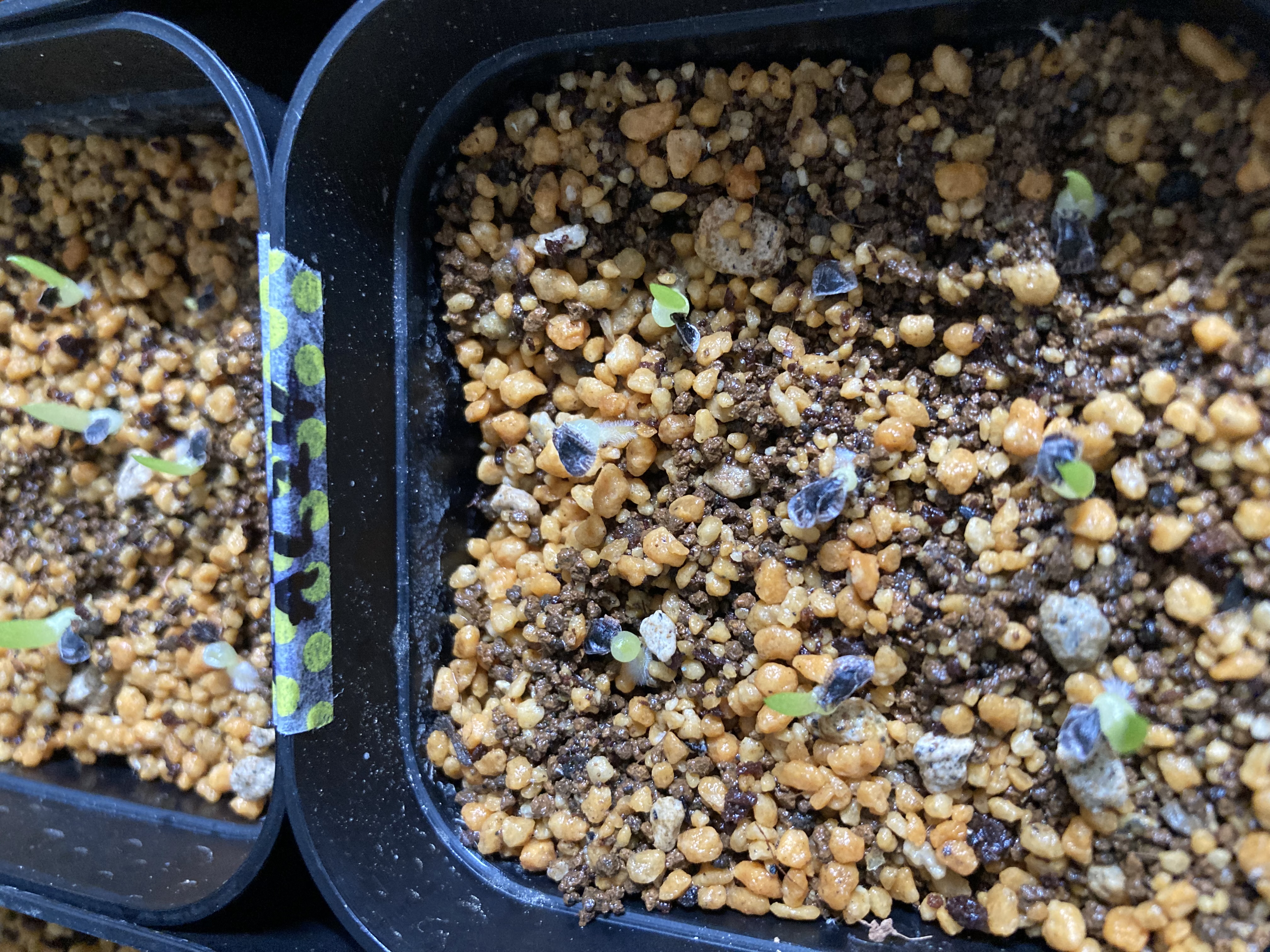 最初は常温で保管したが、芽が出ず、ヒーター(23℃くらい)で2日で発芽した。