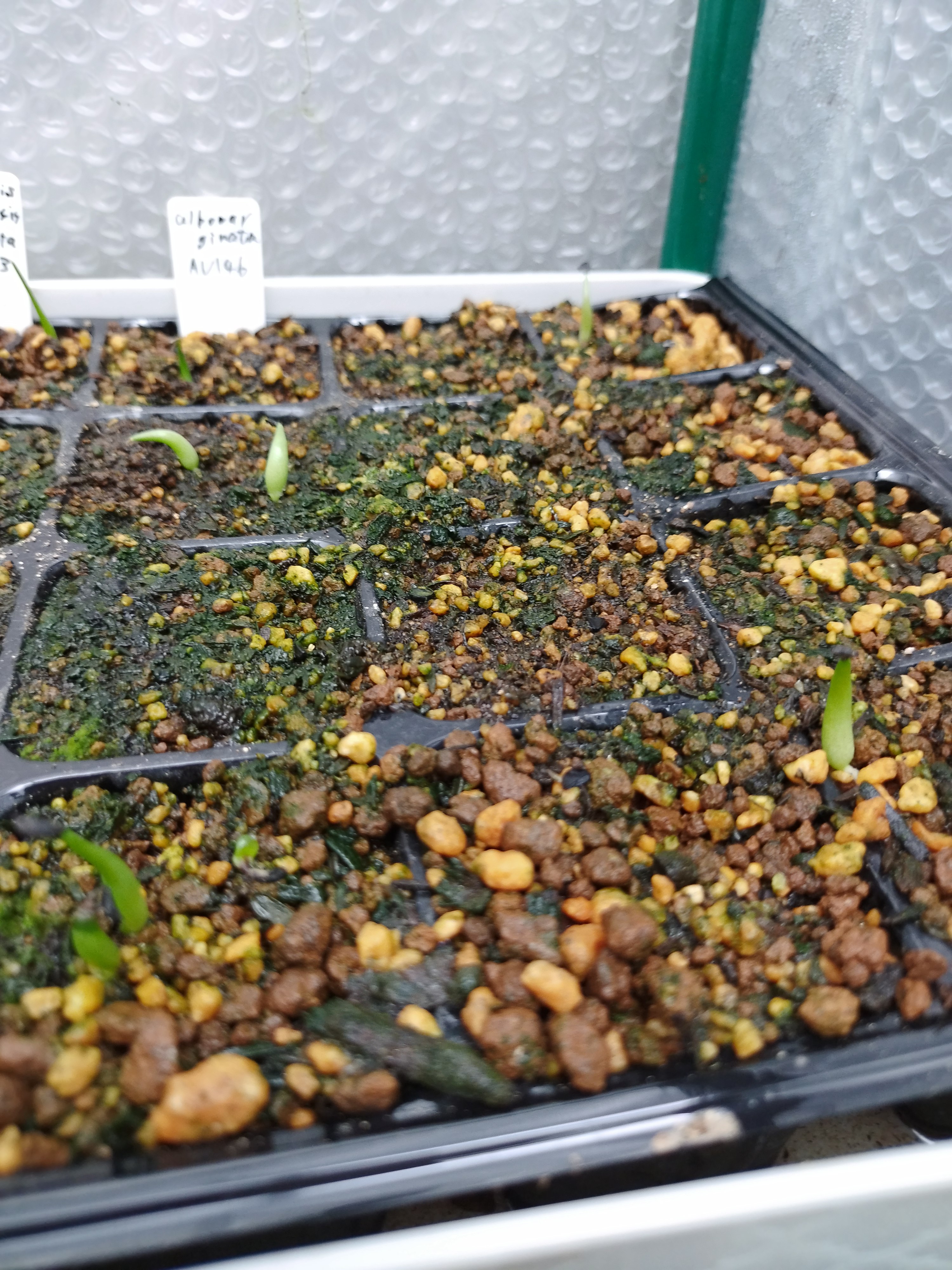 4月中旬播種、赤玉メインの用土、メネデール溶液使用