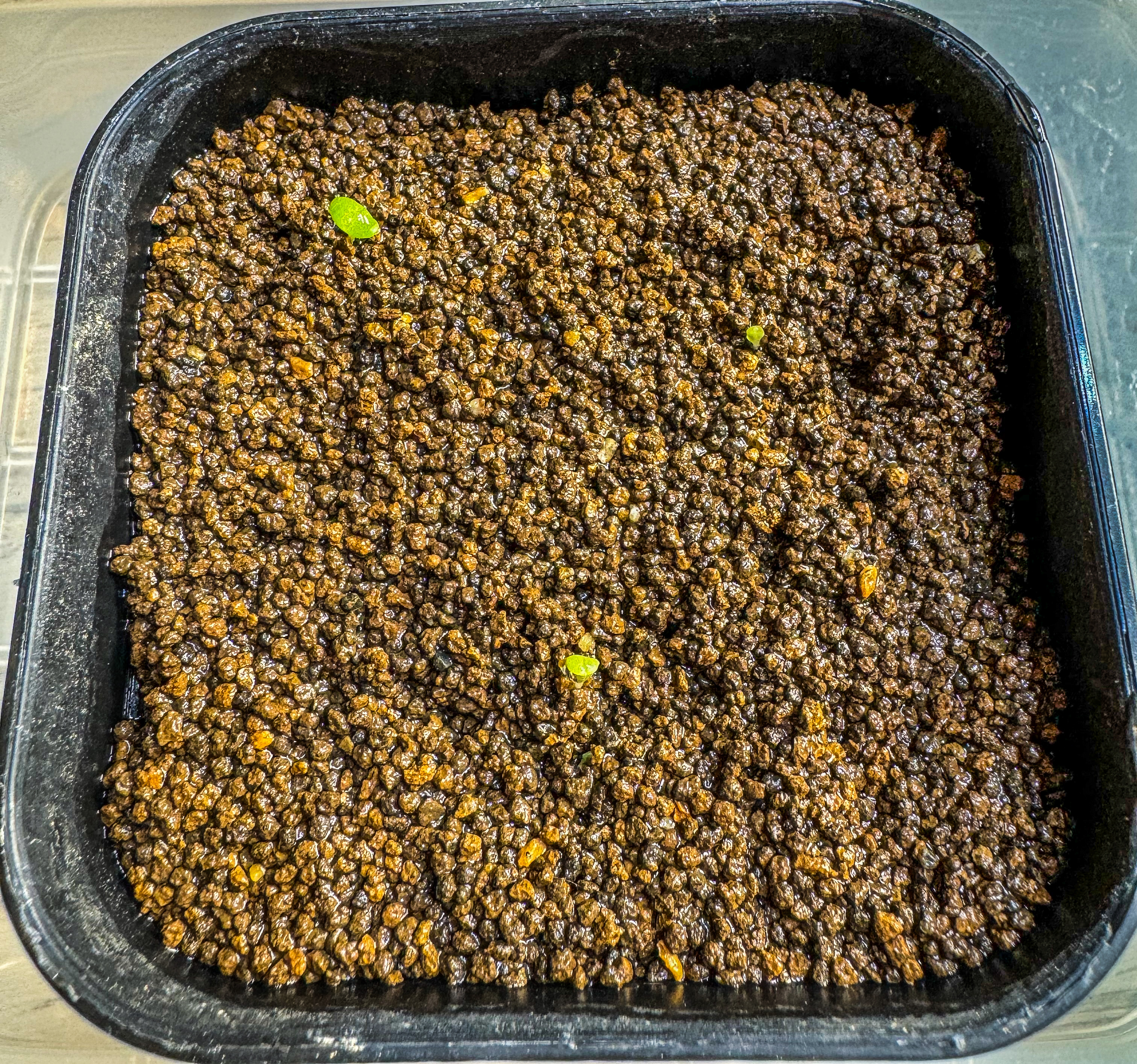 小粒の軽石、赤玉、日向、竹炭メインの用土に細粒赤玉を敷き播種、20度〜25度で管理