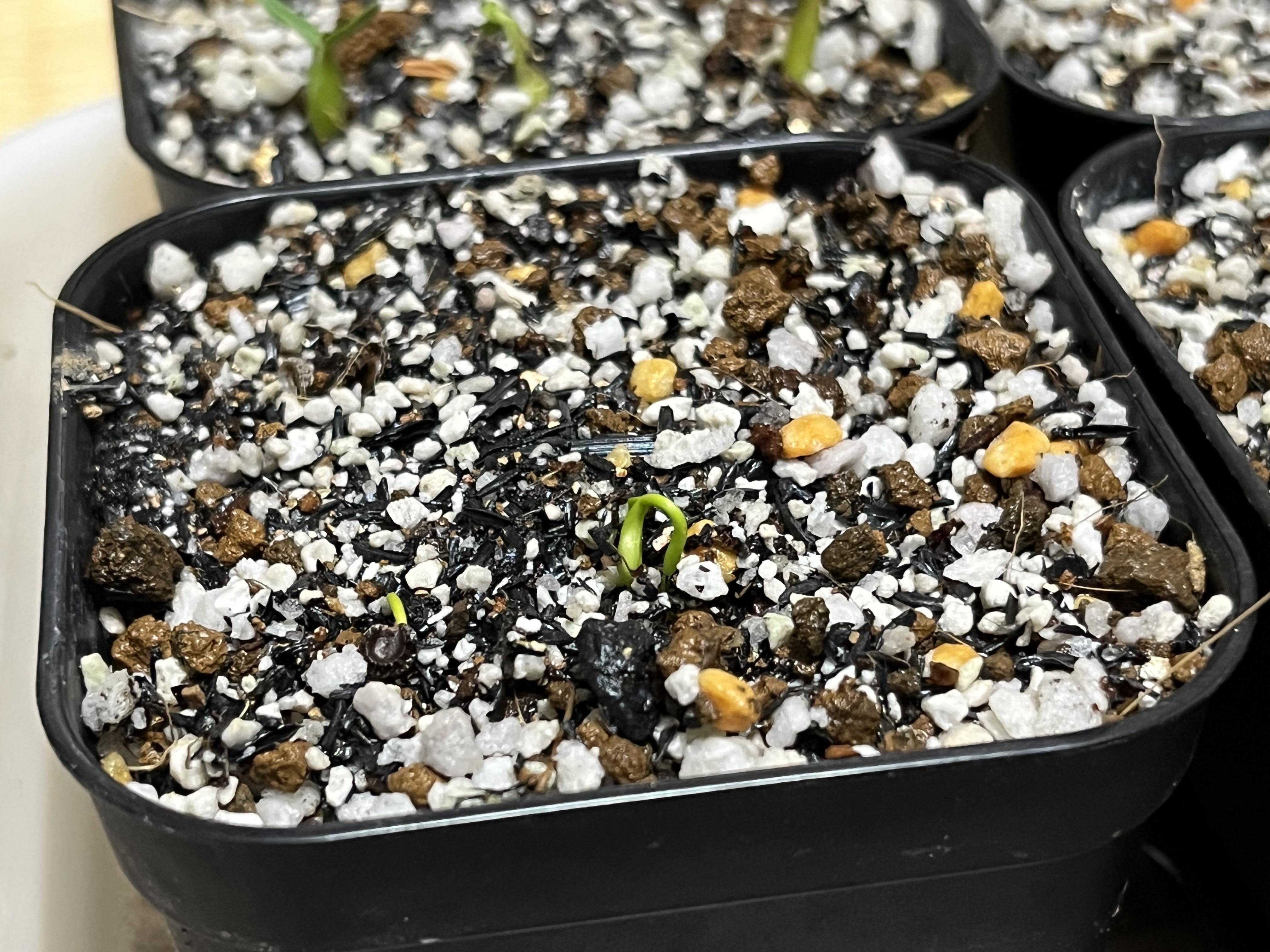 浸潤させても発芽しなくて土に移したら発芽したという情報もあったが発芽せず。